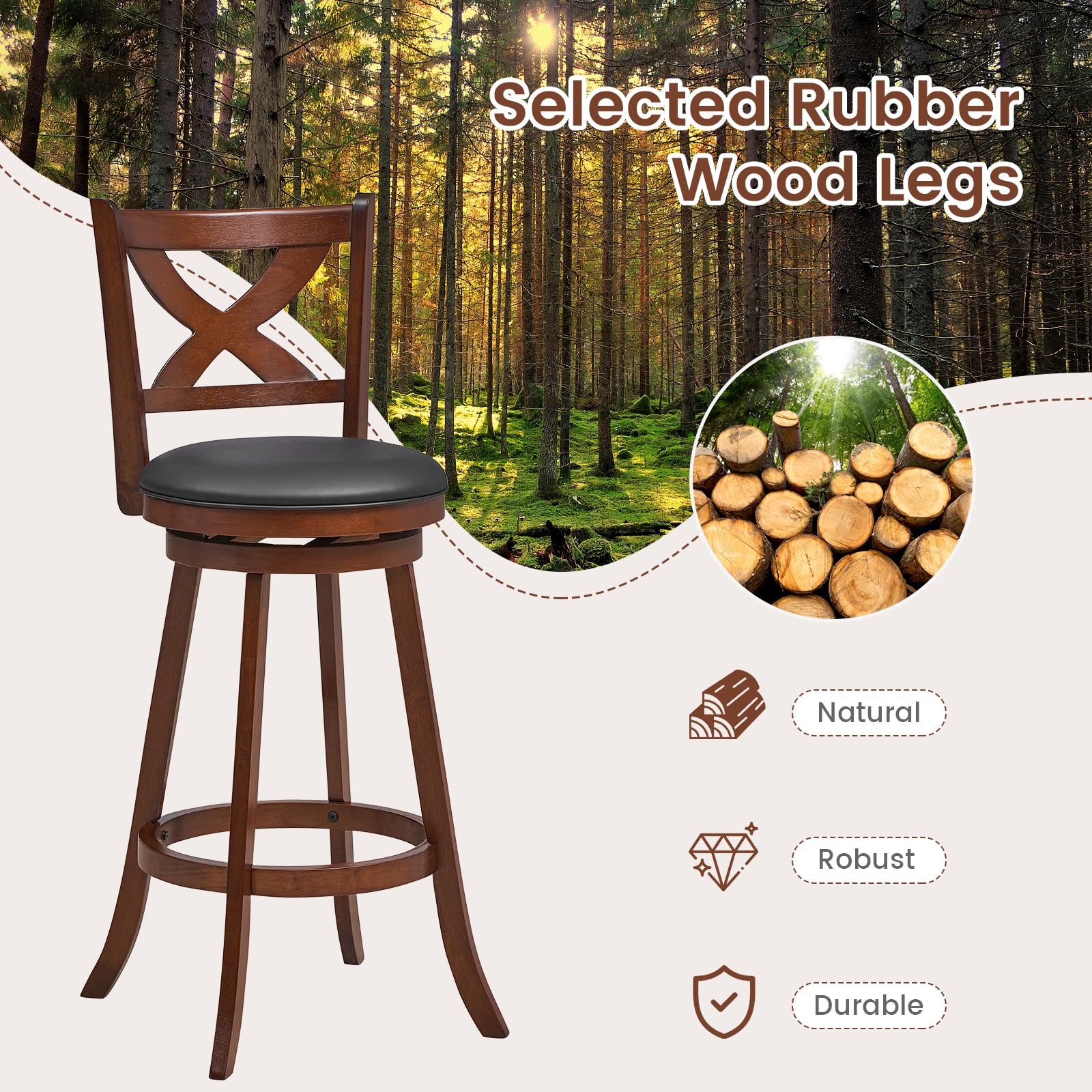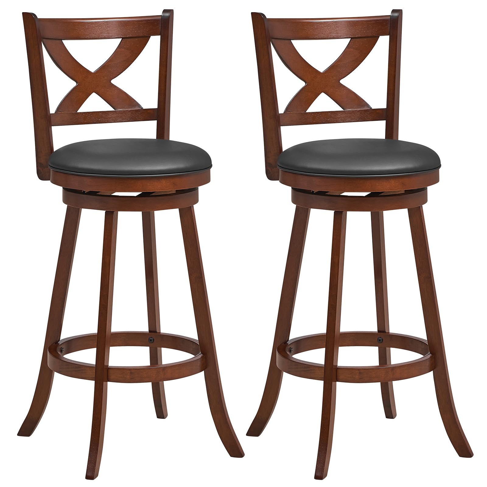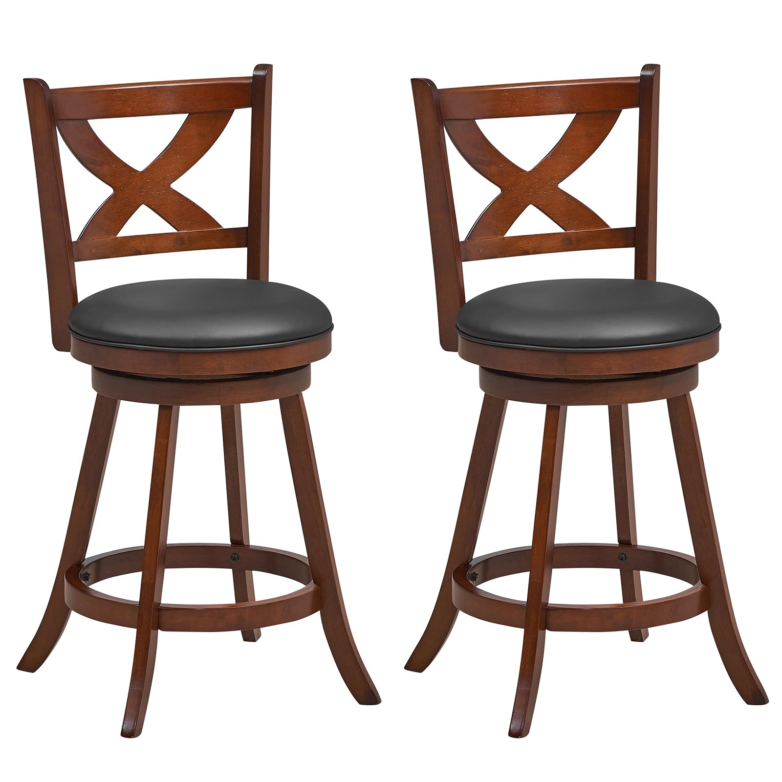 - [ Classic Bar Stools for Wide Use ]: Giantex 24-inch bar stools look elegant with their vintage wood grain finish and high-grade PVC leather seat cushion. The X-shaped high back adds its extra aesthetic appeal. It can be perfectly matched with various counter tables, widely used in various occasions like bars, kitchens, cafes, and pubs.