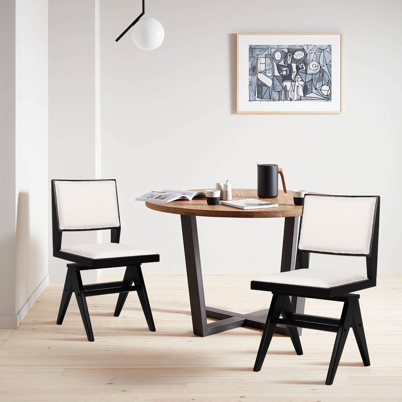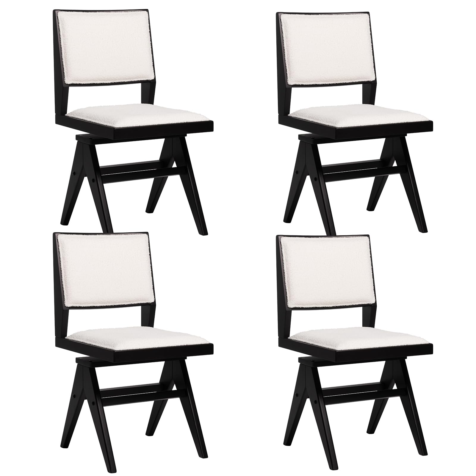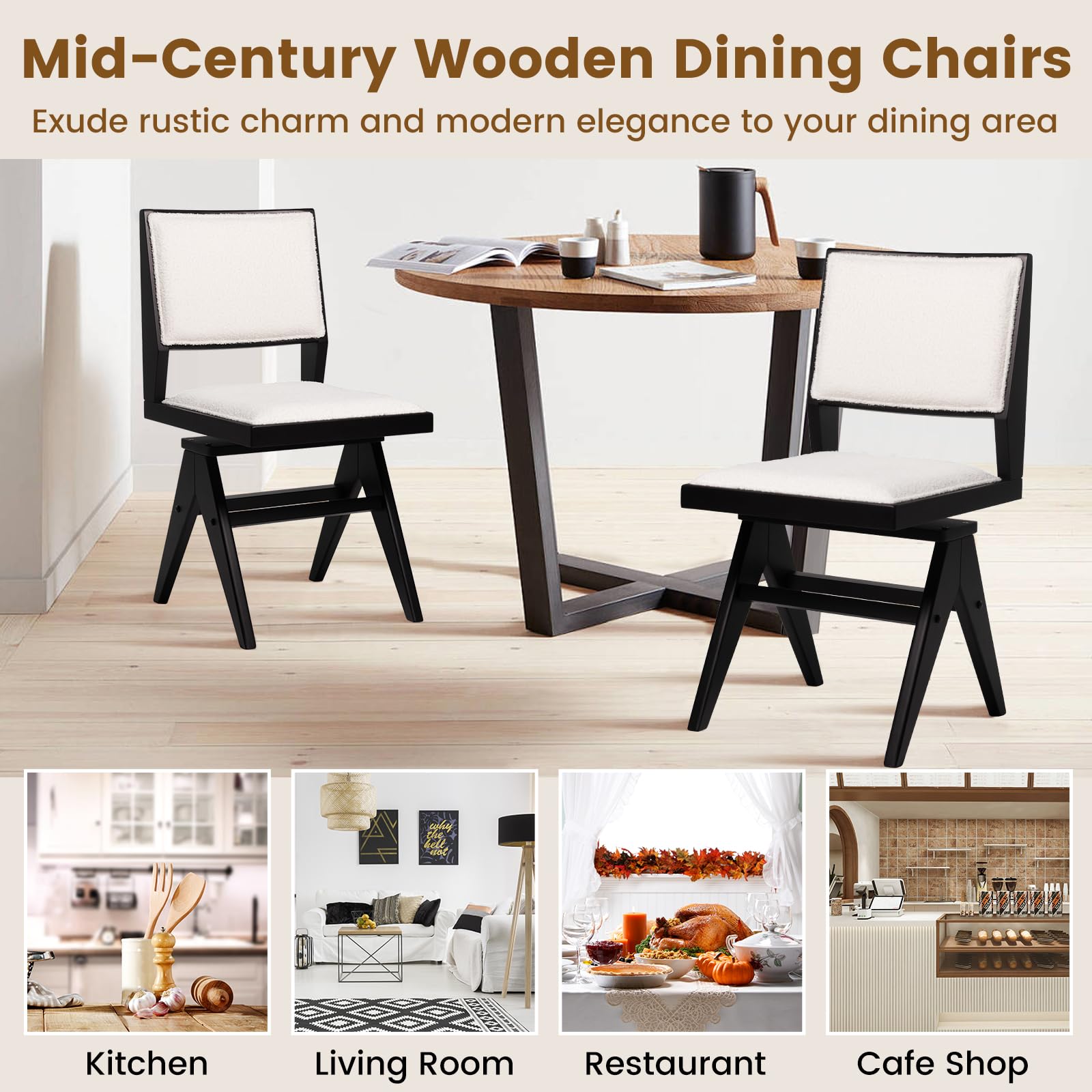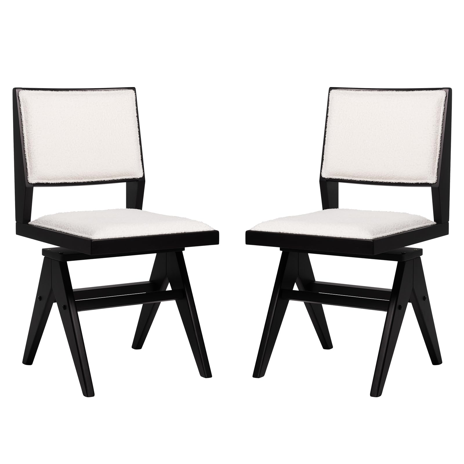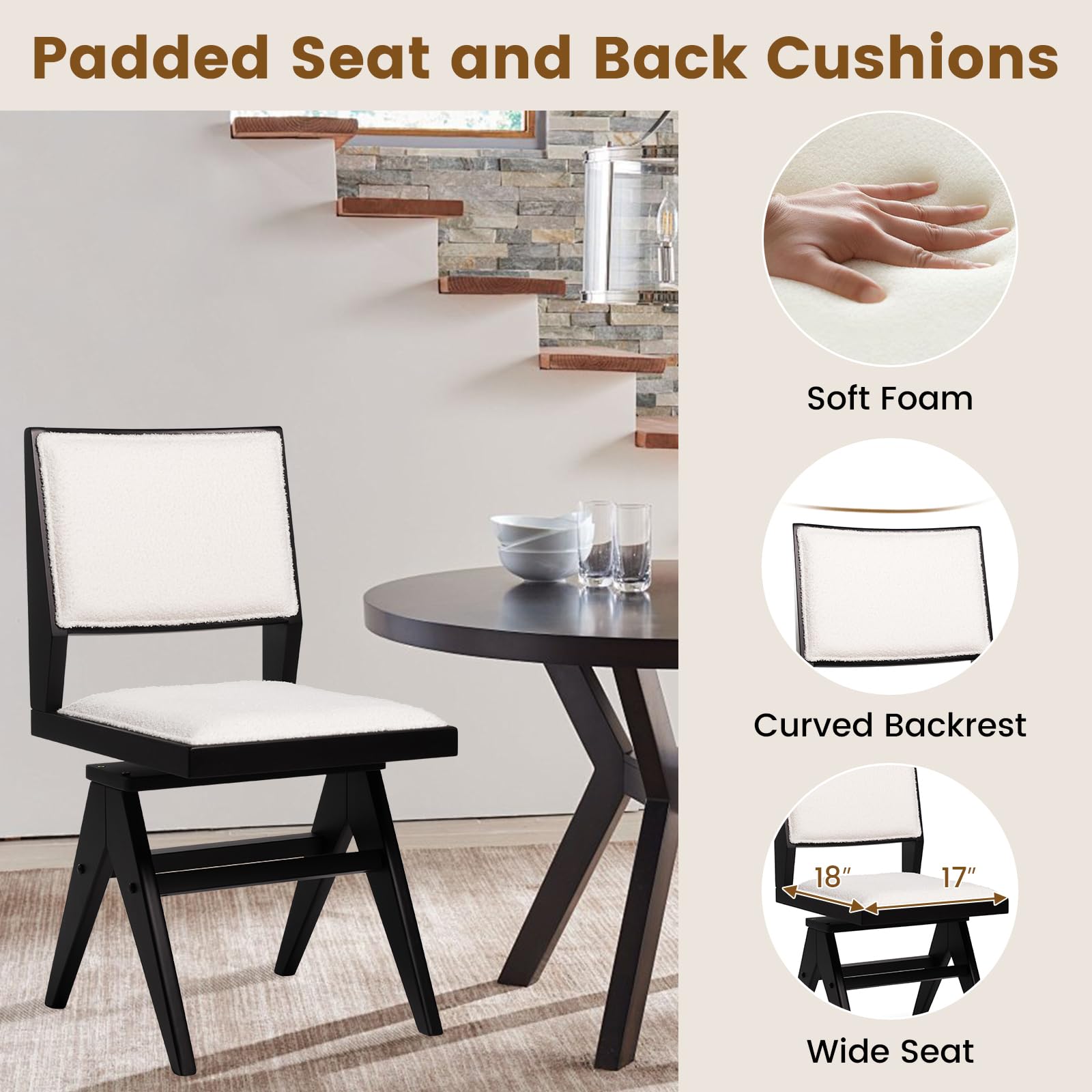 Our swivel dining chair set measures 17" x 22" x 35" (L x W x H), the seat measures 17" x 18" (L x W), and the seat height is 18". The first standout feature is the 360° swivel design, allowing you to easily turn around and engage in conversations without having to move the chair. Moreover, the chairs are upholstered in faux sherpa fabric, creating a soft and inviting feel. The plush material covers both the backrests and seats, ensuring a cozy seating experience. Additionally, supported by solid rubber wood frames, these chairs are built to withstand daily use and provide long-lasting support. Whether for residential and commercial uses, our swivel dining chair set can be a perfect choice!