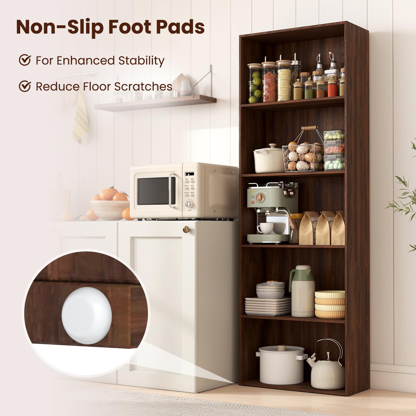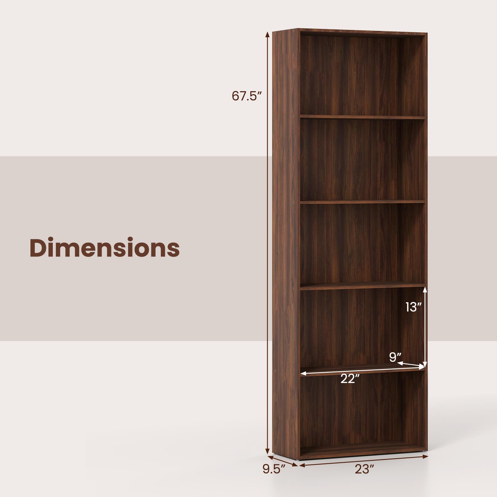 Looking to elevate your space? This must-have modern bookcase not only provides ample and versatile storage across 5 spacious shelves but ensures everything stays perfectly in place with robust construction and an anti-tip feature. Each tier holds up to 45 lbs, perfect for your books, plants, or collectibles. Worried about maintaining appearances? Fear not! This beauty stands tall at 67.5", and stays pristine with just a quick wipe. Make the most of any room without sacrificing style or safety! Quick, because a clean, organized, and stylish home is just a click away! It fits perfectly wherever you need it, from your cozy reading nook to a bustling home office.