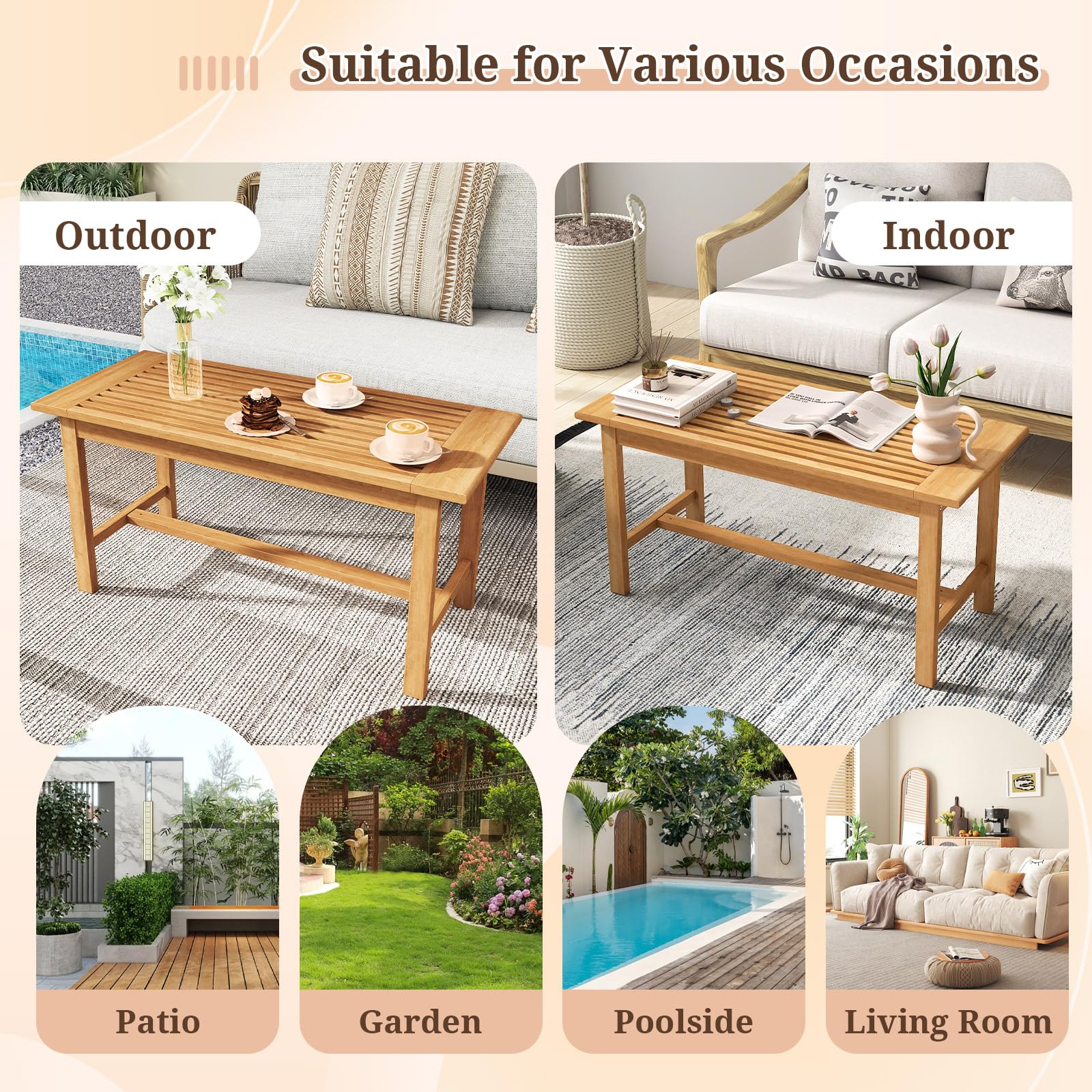 - [Solid Teak Wood Structure]: Crafted from durable solid teak wood, this patio coffee table ensures longevity and crack-resistance, promising enduring use. The reinforced cross-shaped structure enhances stability, providing a reliable outdoor centerpiece for your space.