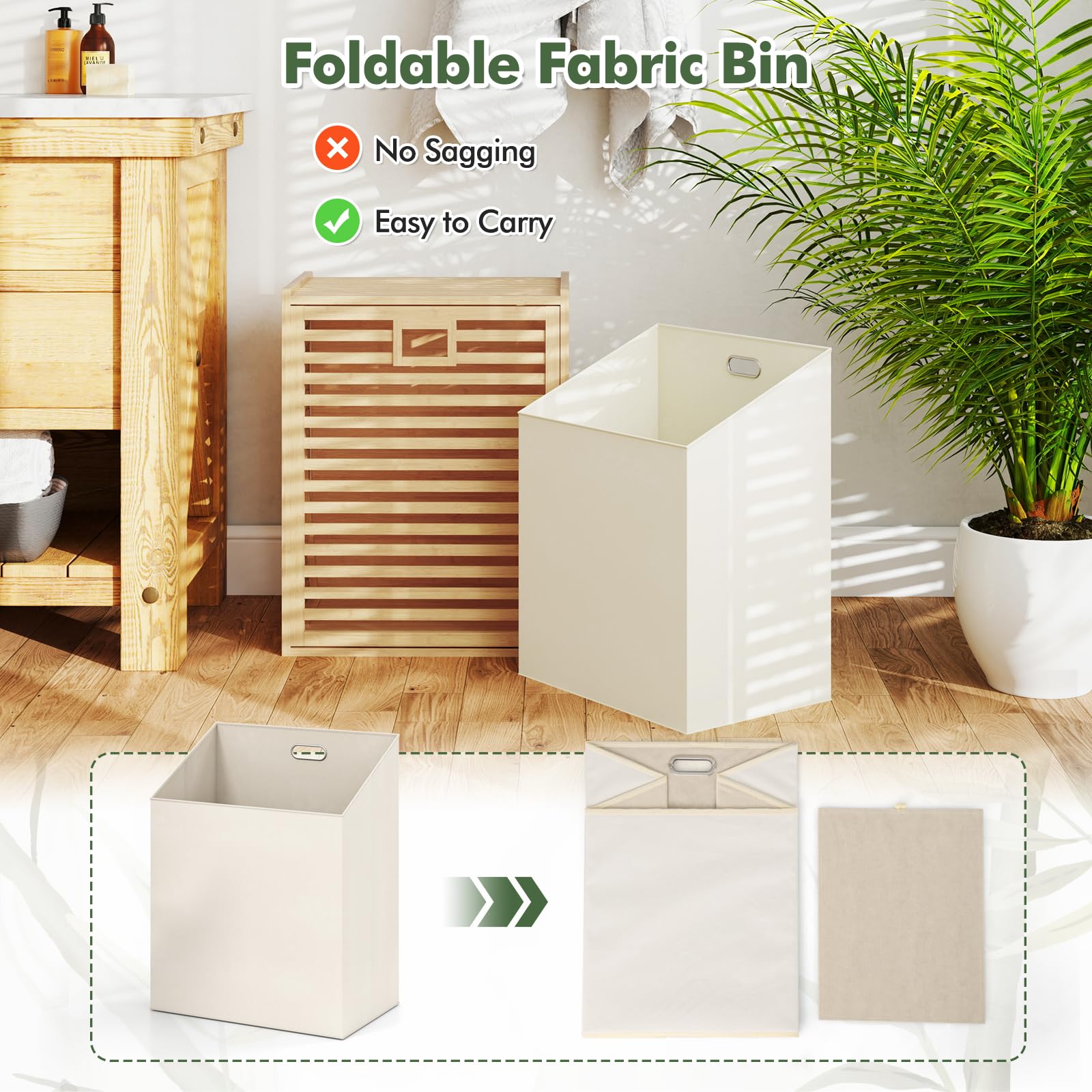 Say goodbye to messy and unsightly clothes. Designed to simplify your laundry storage, our tilt-out laundry hamper helps to keep your changed clothes organized, hygienic, and out of sight. Its top area doubles as an extra storage space for your toiletries, and its 300D polyester storage bin is removable from the hamper, streamlining your laundry routines. Whether in your bathroom, laundry room, or living spaces, it adds a touch of modern flair and keeps your space free of clutter. Start organizing today!