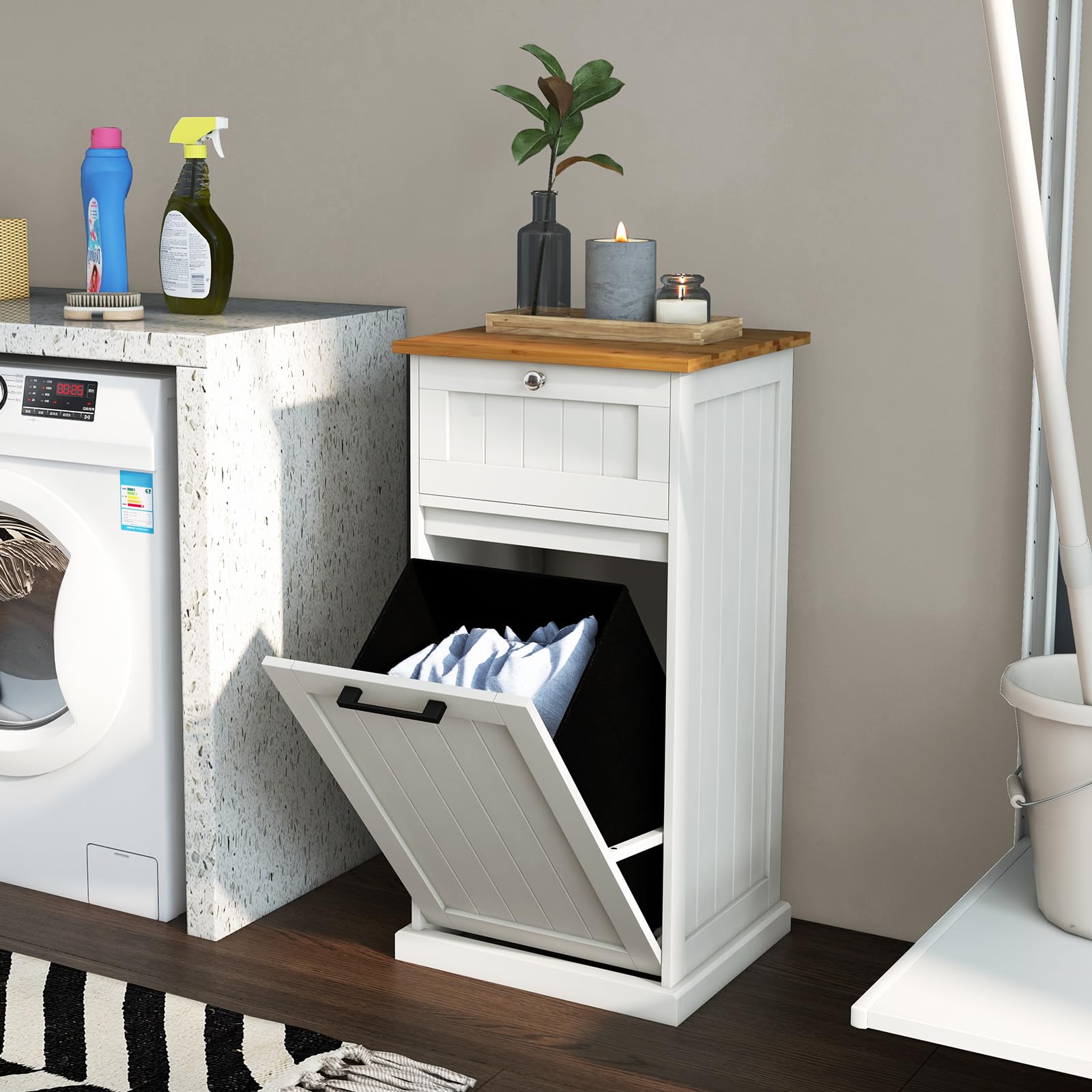 - Diversified Storage Space: Our tilt-out laundry hamper offers versatile storage options with a wide cabinet top, deep drawer, tilt-out cabinet, and removable laundry basket.