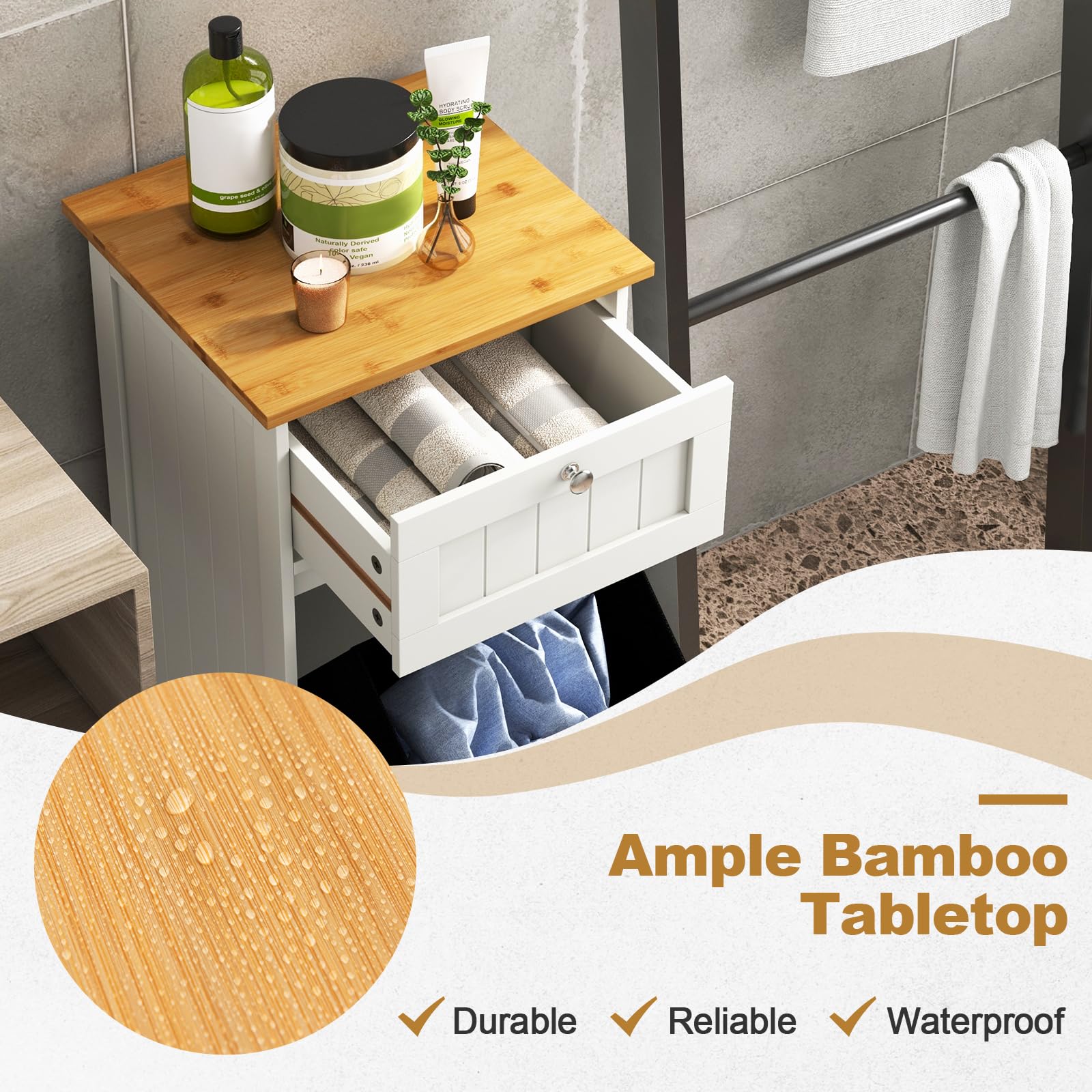 - Anti-Tipping & Stable Frame: Our laundry storage cabinet is made of natural bamboo tabletop and selected wood frame, ensuring durability, reliability, and waterproof qualities that resist deformation. It features an anti-toppling device for added stability, allowing it to be securely attached to the wall and preventing tipping and wobbling.