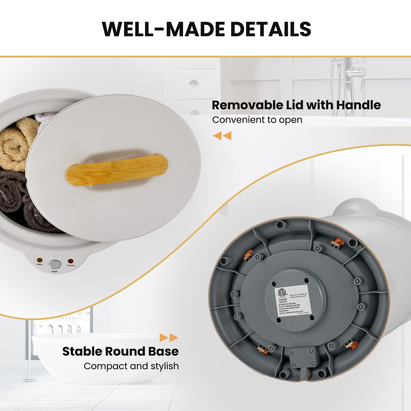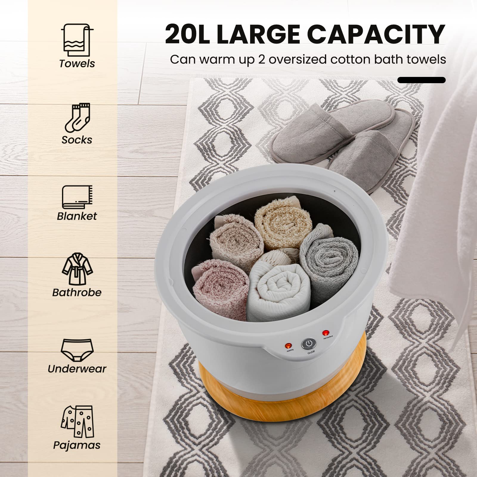 • 20L LARGE CAPACITY -- The bucket-style towel warmer can warm up to two 40" x 70" oversized cotton bath towels. It can also be used for warming blankets, socks, bathrobes, underwear, pajamas, and more.