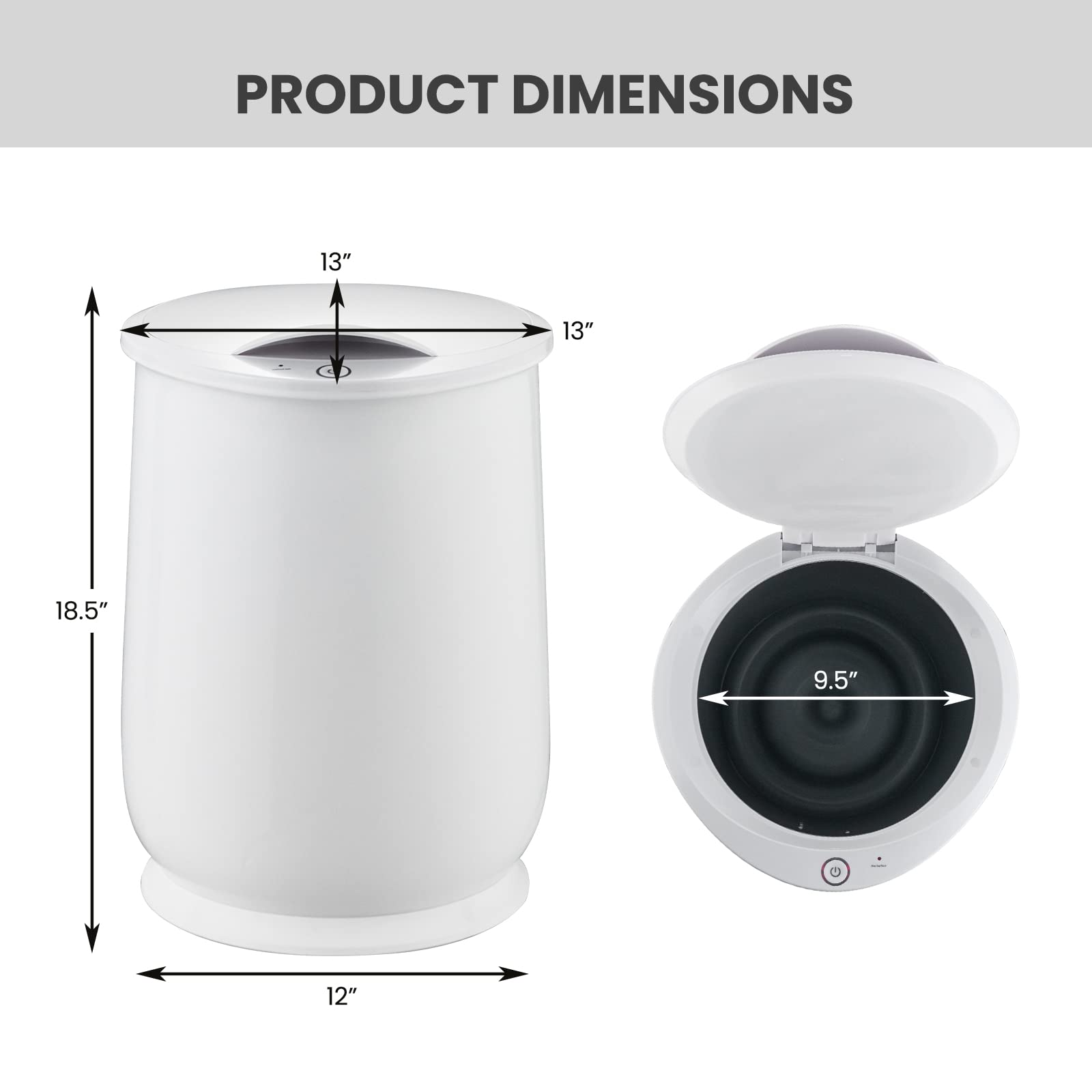 This one-button control towel warmer is easy to use and can heat up quickly, reaching the highest temperature of 266 Fahrenheit within 15 minutes. After heating for 60 minutes, the towel warmer bucket will shut off automatically, ensuring safety and saving energy. In addition, it warms up towels inside and outside evenly to bring you a comfy spa-like experience. The 20L extra-large towel warmer works for a whole family's warmth, and can easily hold up to two 45" x 70" bath towels or a bathrobe, a personal blanket, stockings, pajamas, etc. Moreover, the freestanding bucket design and light weight make it easy to move around and can be placed anywhere. The round-shaped base is stylish and stable, while the flip-top lid design is easy to open and close.