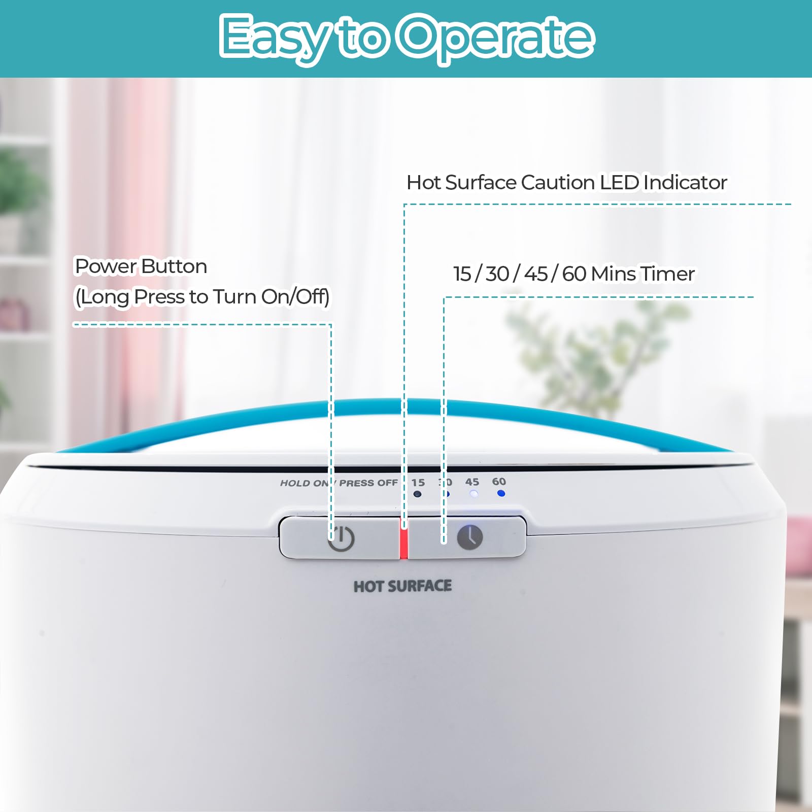- Easy Operation: With a simple on/off button and a timer that can be set for 15, 30, 45, or 60 minutes, this towel warmer is designed for effortless operation. Simply long press the power button to turn it on or off. Enjoy a soothing and relaxing experience with fast and efficient towel heating after your shower or bath.