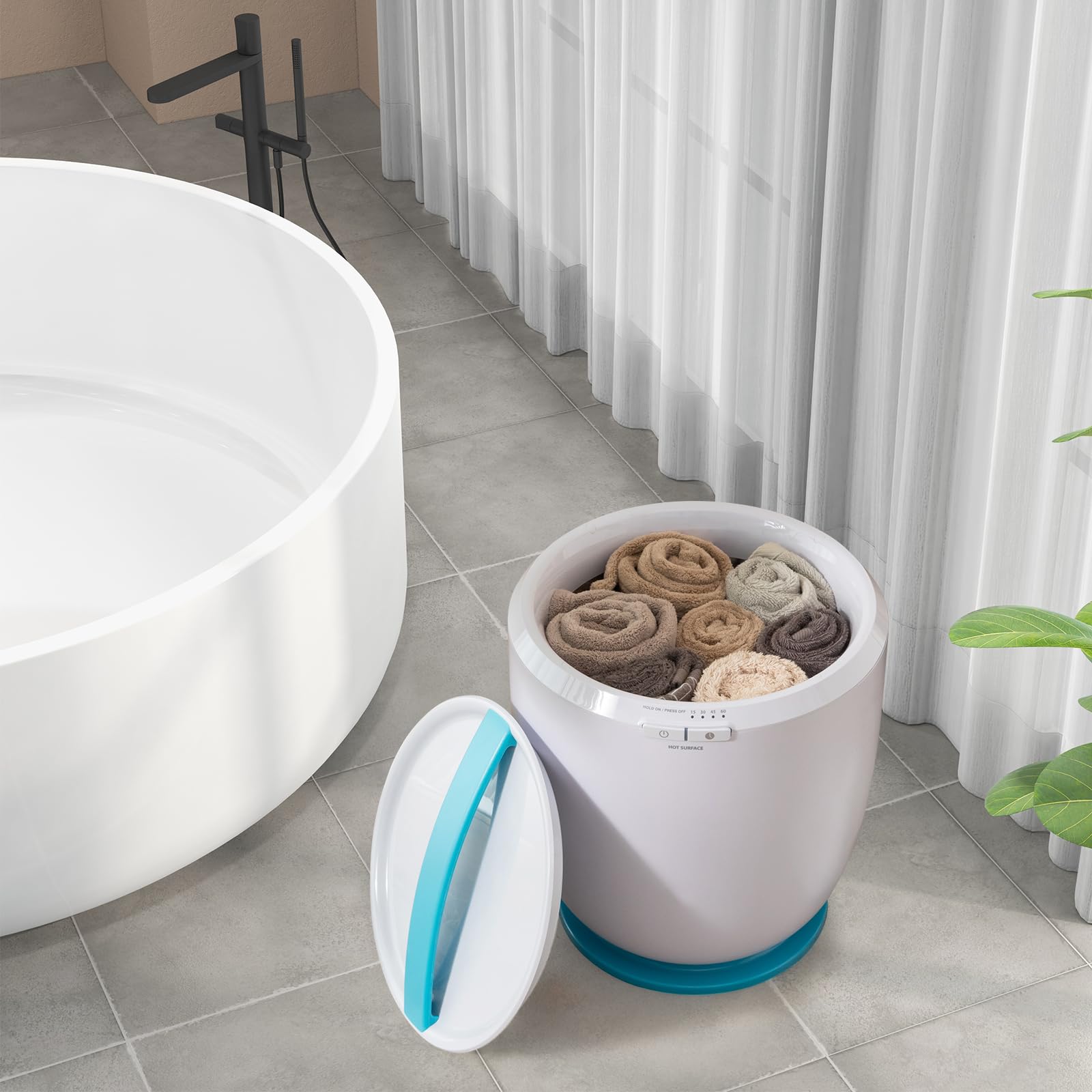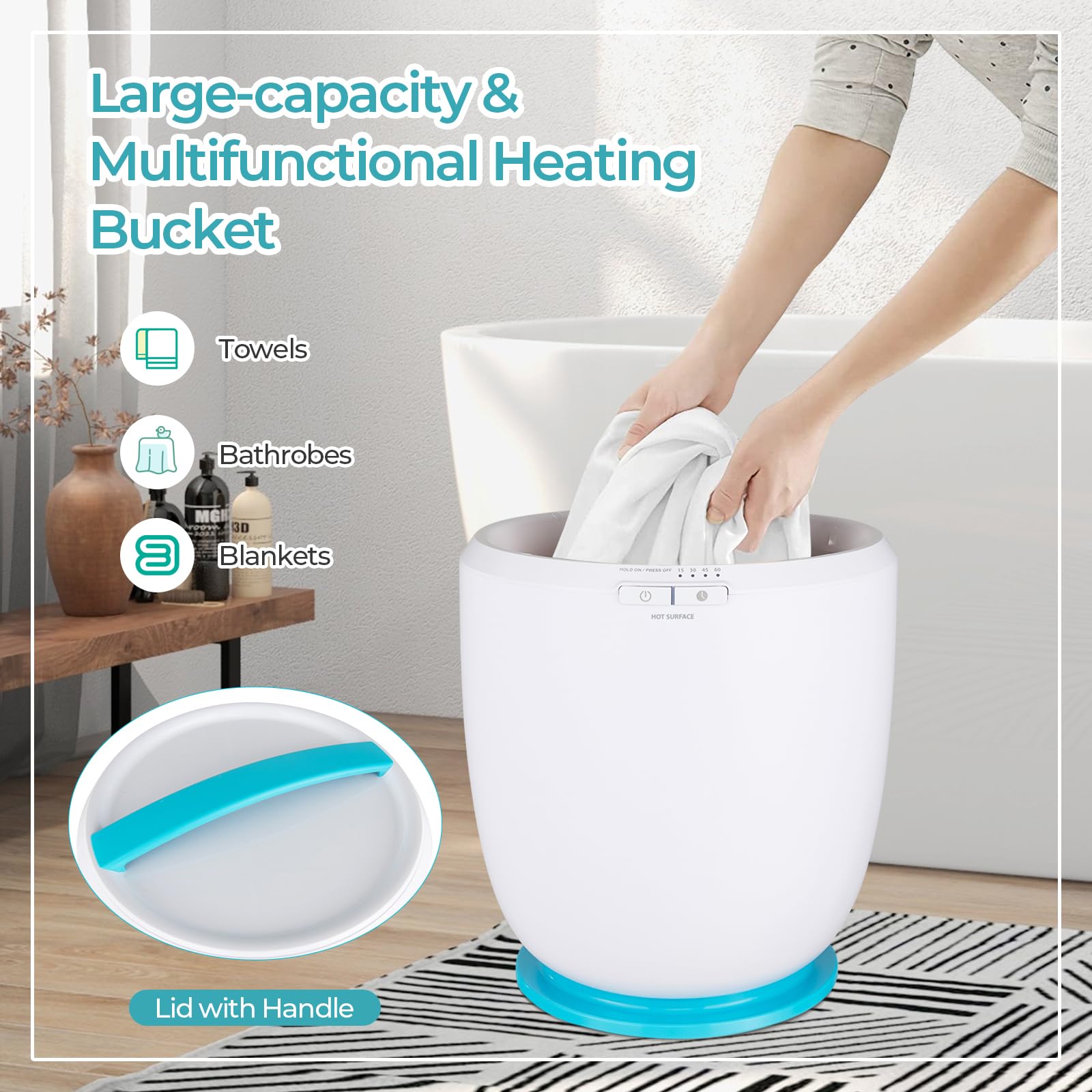 - Practical Towel Warmer Bucket: This towel warmer bucket has a 16L capacity, making it capable of warming a 40" x 70" bath towel, pajamas, socks, and more. Additionally, you have the option to add your favorite fragrance disc (Not included) for a pleasant and aromatic towel experience.