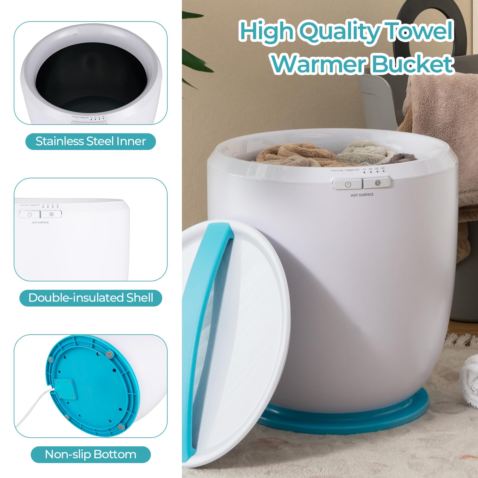 - Fast & Even Heating: This towel warmer bucket features a 430 stainless steel liner and double layer insulation, ensuring an efficient and consistent heating process. Within just 15 minutes, it will reach a temperature of up to 275?H, providing you with warm towels instantly and eliminating any cold spots.