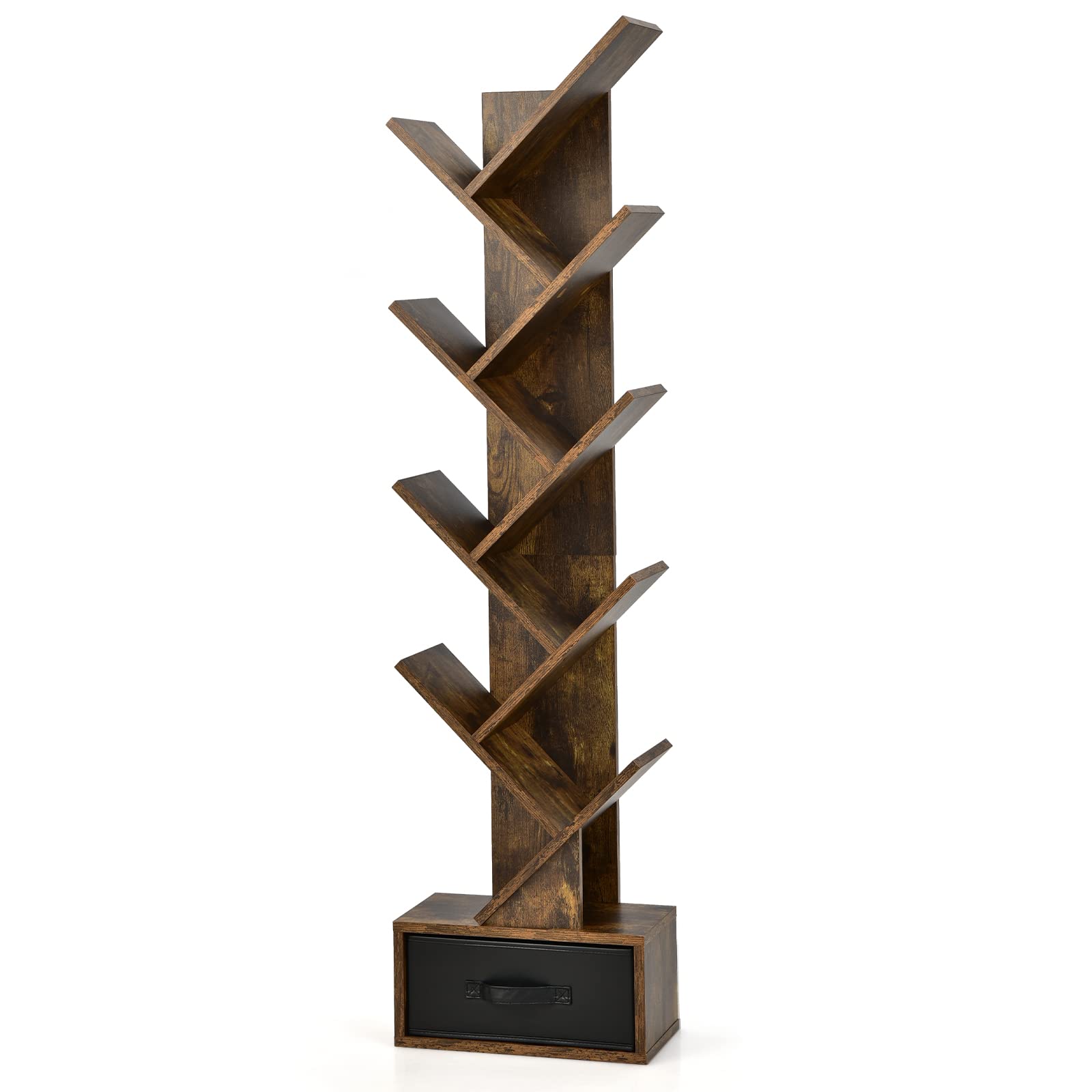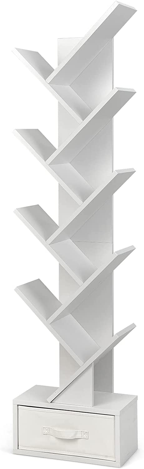 Giantex Tree Bookshelf with Drawer, 10 Shelf Space Saving