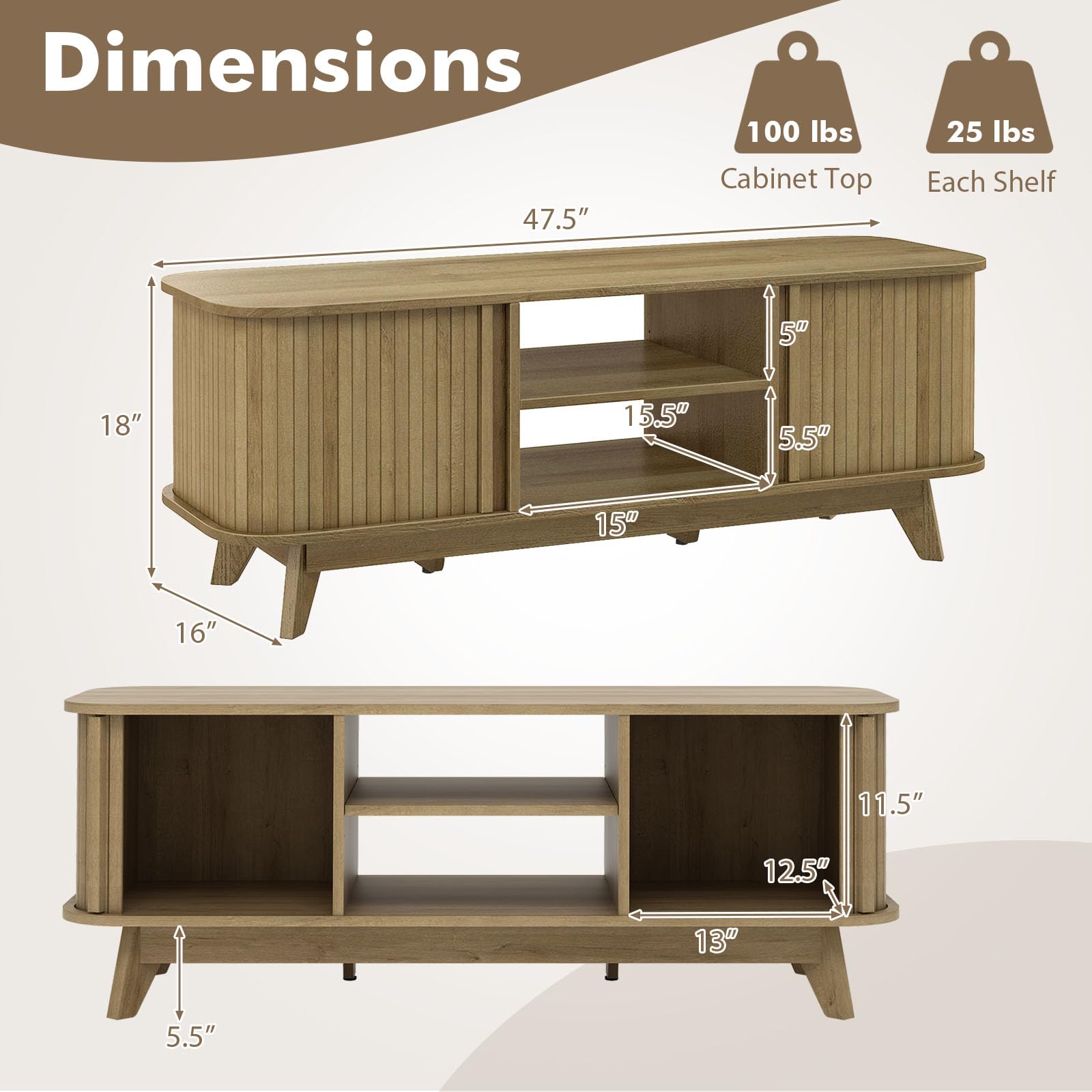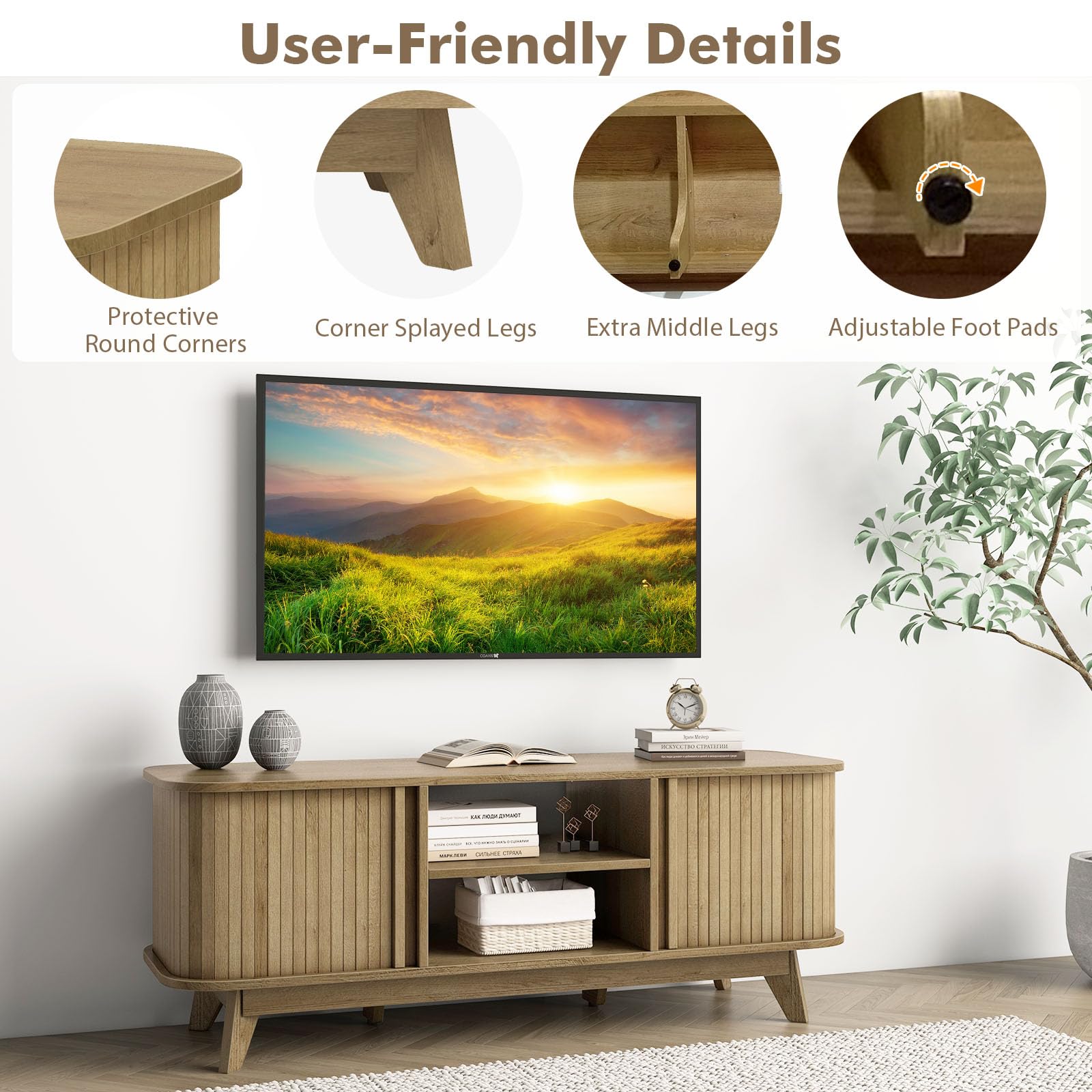 - 【Robust & Reliable Construction】: With splayed legs and a center support leg, this TV cabinet supports a weight capacity of 200 lbs. The adjustable foot pad ensures unmatched stability for worry-free usage.
