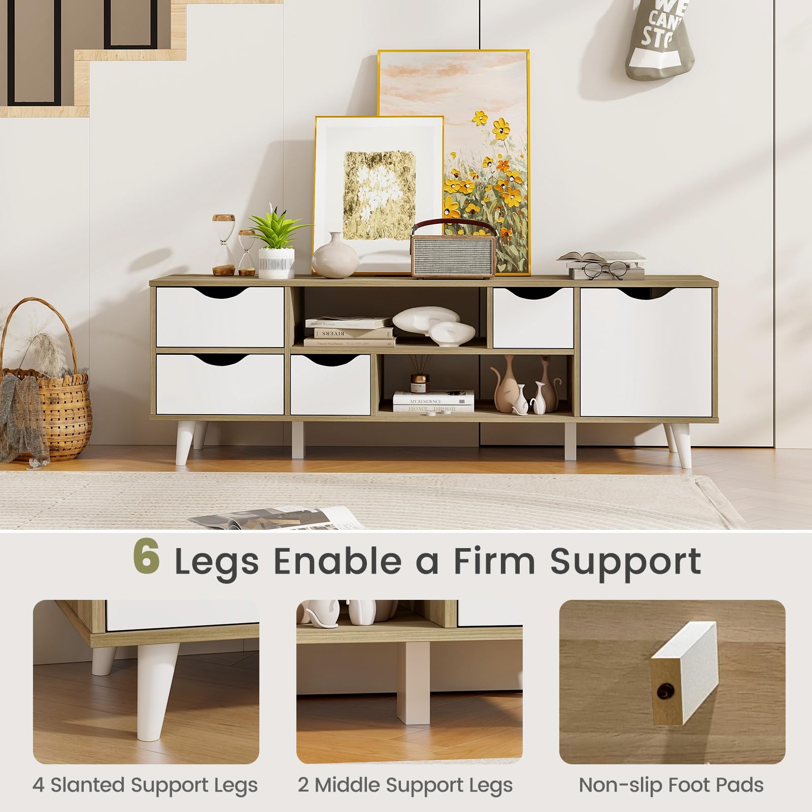 - 【Enhanced Support】: Supported by 6 solid support legs, this media console table provides a stable base for your electronics while distributing the weight evenly across the structure. Additionally, the non-slip foot pads prevent the floor from getting scratches.