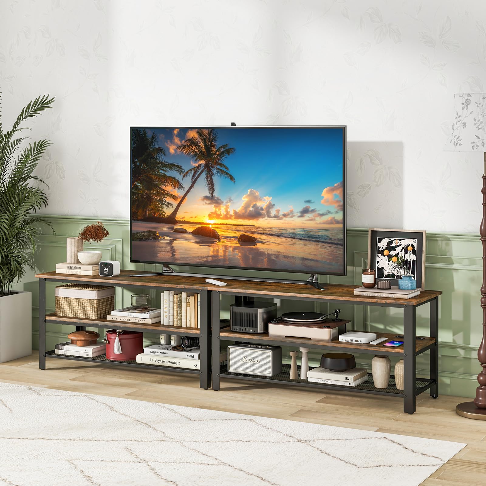 - Industrial Charm and Stability: The robust metal frame of the entertainment center not only adds an industrial touch to your space but also provides strong support for screens up to 50 inches and a weight capacity of 340 lbs, ensuring great stability with adjustable foot pads.