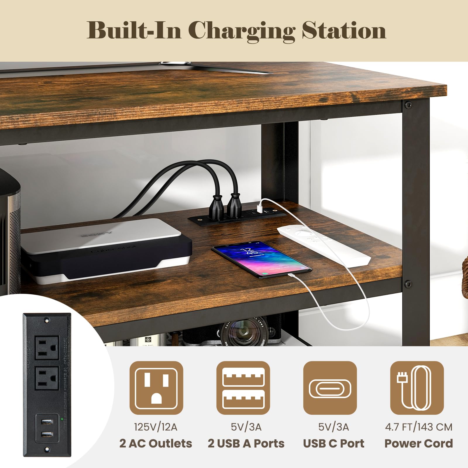 - Connectivity and Convenience: Stay connected and charged with the TV stand's built-in AC outlets and USB ports, allowing you to power up devices while enjoying your favorite shows and movies.