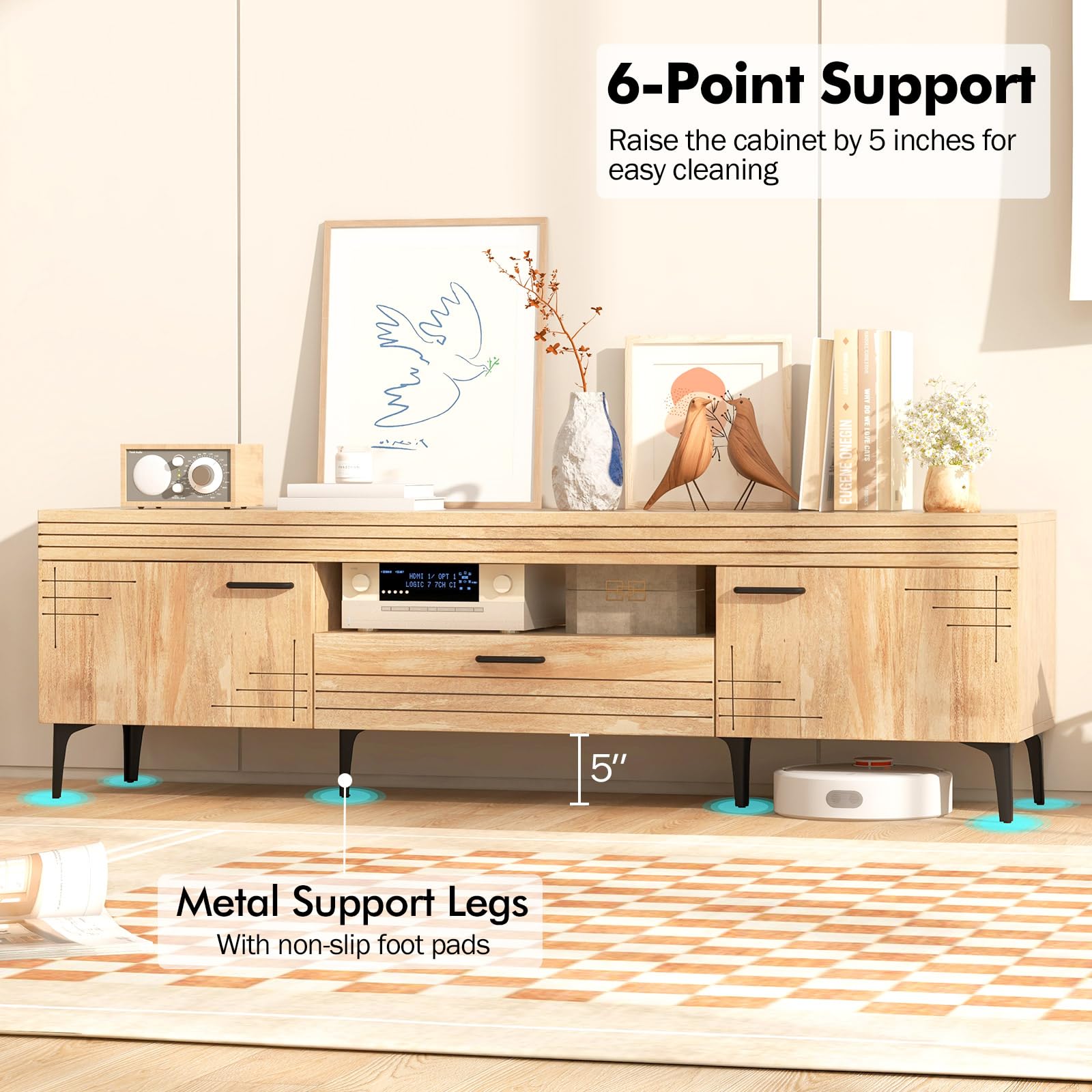 - [6-Leg Support]: Supported by 6 robust metal legs with non-slip foot pads, this TV cabinet combines stability with style. The legs protect your floors from scratches while ensuring the stand remains steady and secure.
