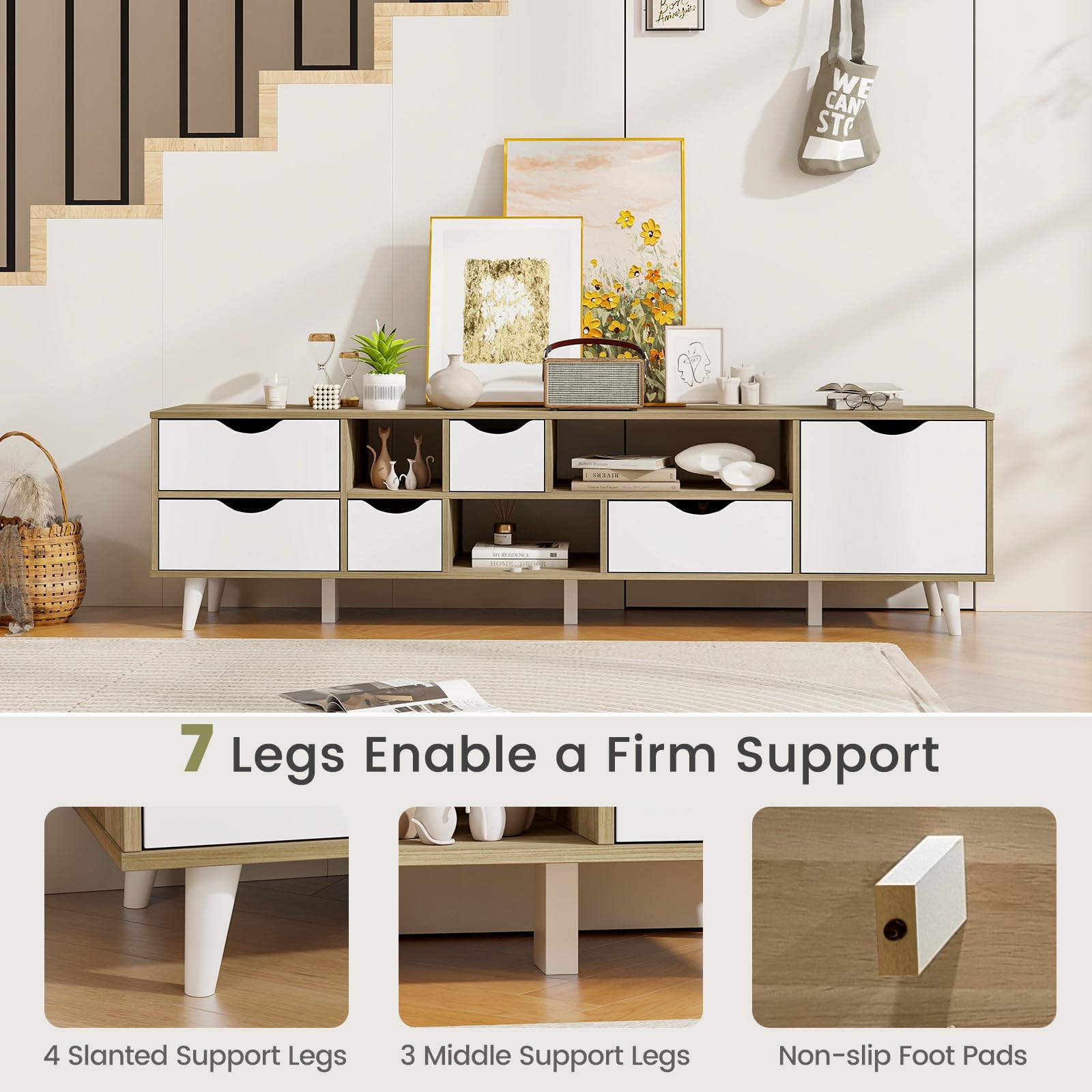 - 【Sturdy Support System】: Equipped with 7 solid support legs, this media console table ensures your electronics are well-supported and stable. The weight is evenly distributed, while non-slip foot pads protect your floors from scratches.