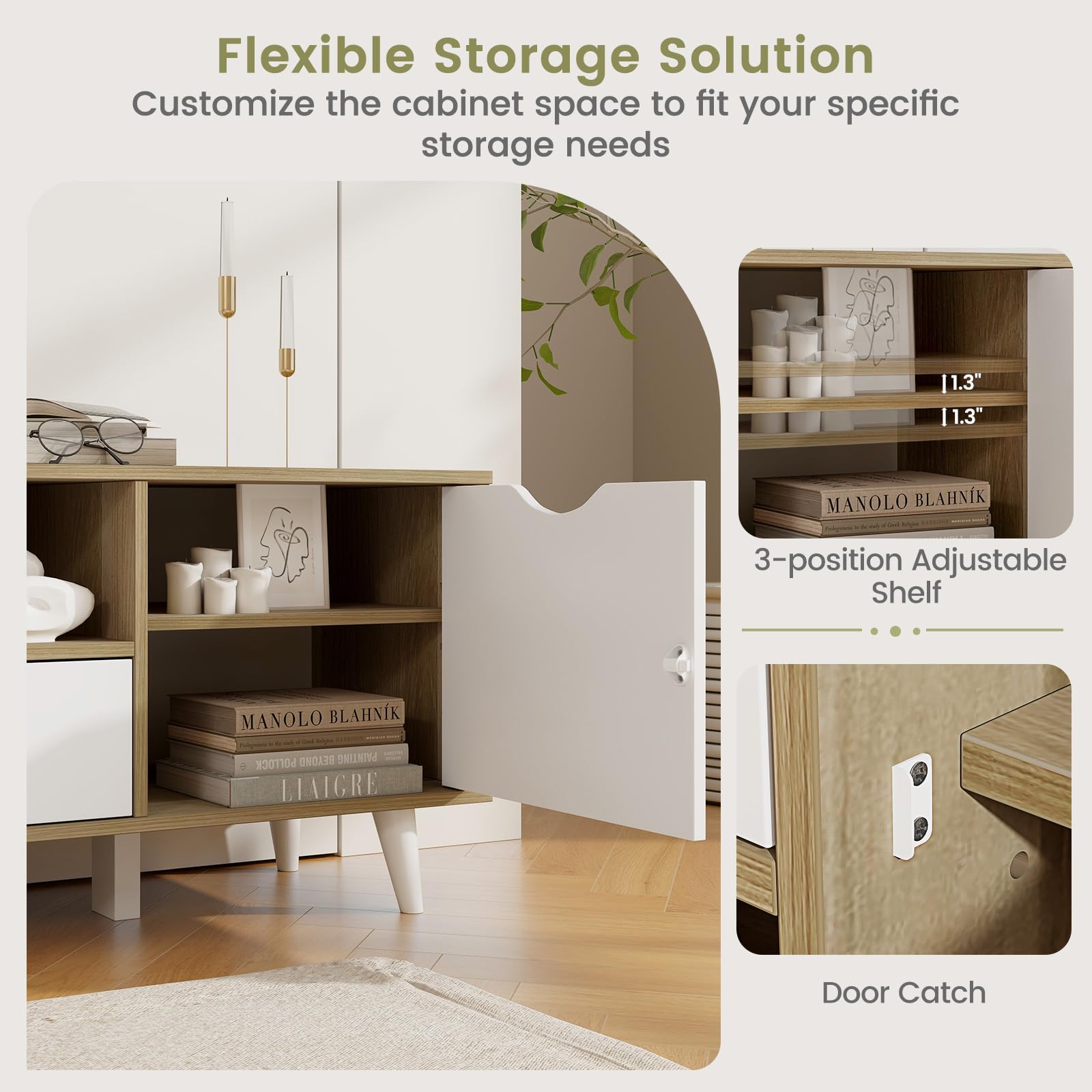 - 【Customizable Shelf Design】: The TV cabinet features a 3-position adjustable shelf, allowing you to personalize the storage space according to the size of your items. Effortlessly accommodate taller or larger objects.