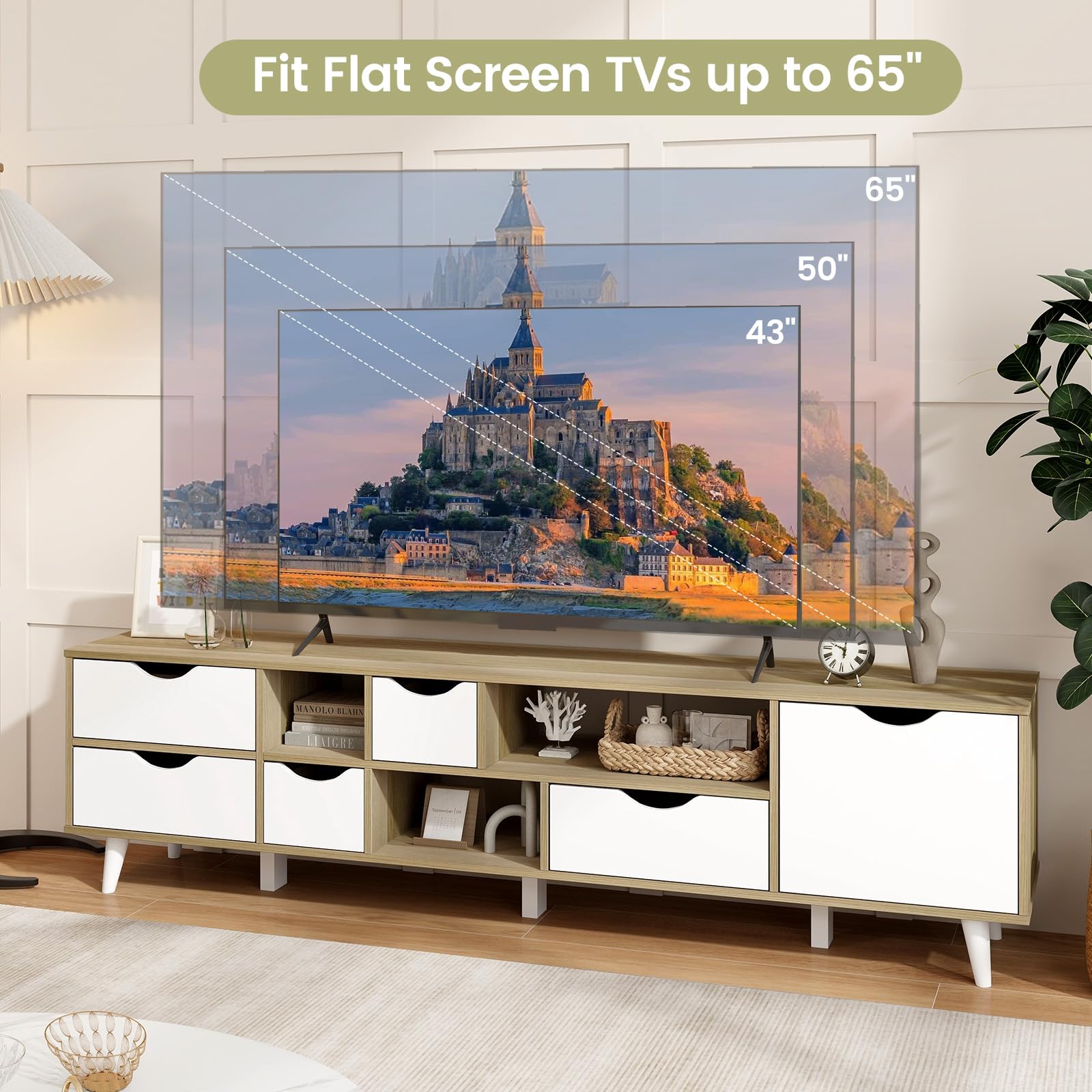 - 【Mid-Century Modern Charm】: Designed for TVs up to 65 inches, this television stand boasts a timeless mid-century modern style. The blend of colors and natural wood textures adds a touch of warmth and elegance to your living space.