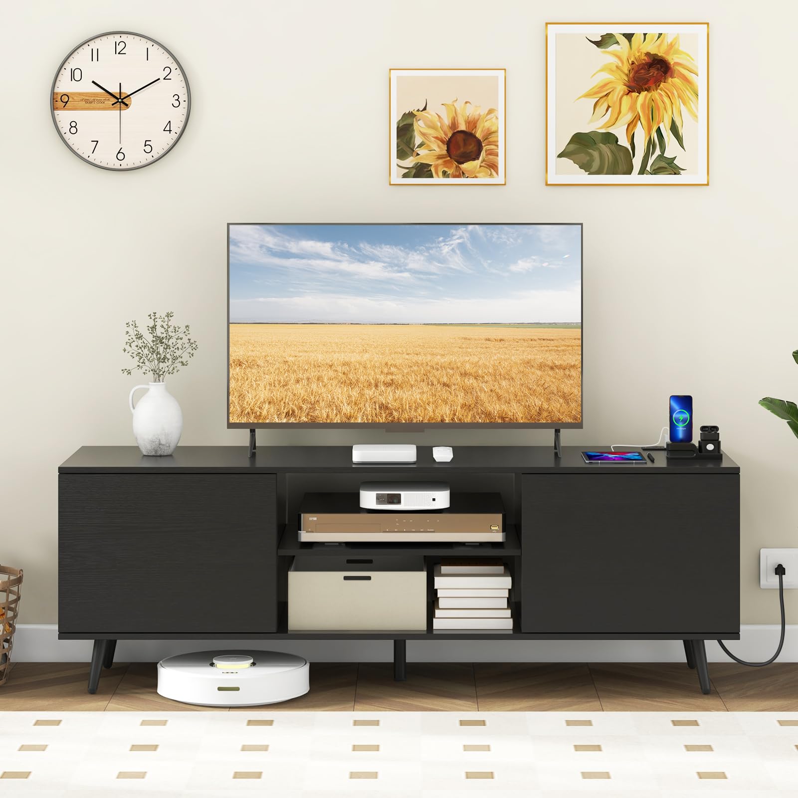 • [Spacious Storage Space]: Organize your media devices, books, ornaments, and more with ease using the ample storage options of this media console table. With a large tabletop, 2 open shelves, and 2 single-door cabinets, everything stays within reach yet neatly hidden from view.