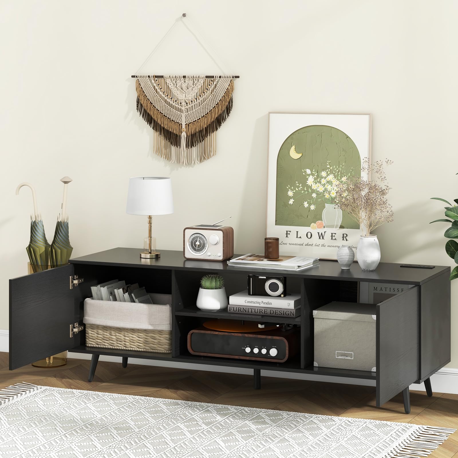 • [Solid & Sturdy Construction]: Constructed with thickened boards and supported by 5 heavy-duty metal legs, this TV cabinet boasts a weight capacity of up to 315 lbs, providing a stable base for your media equipment. Rest assured that your TV and accessories are well-supported.