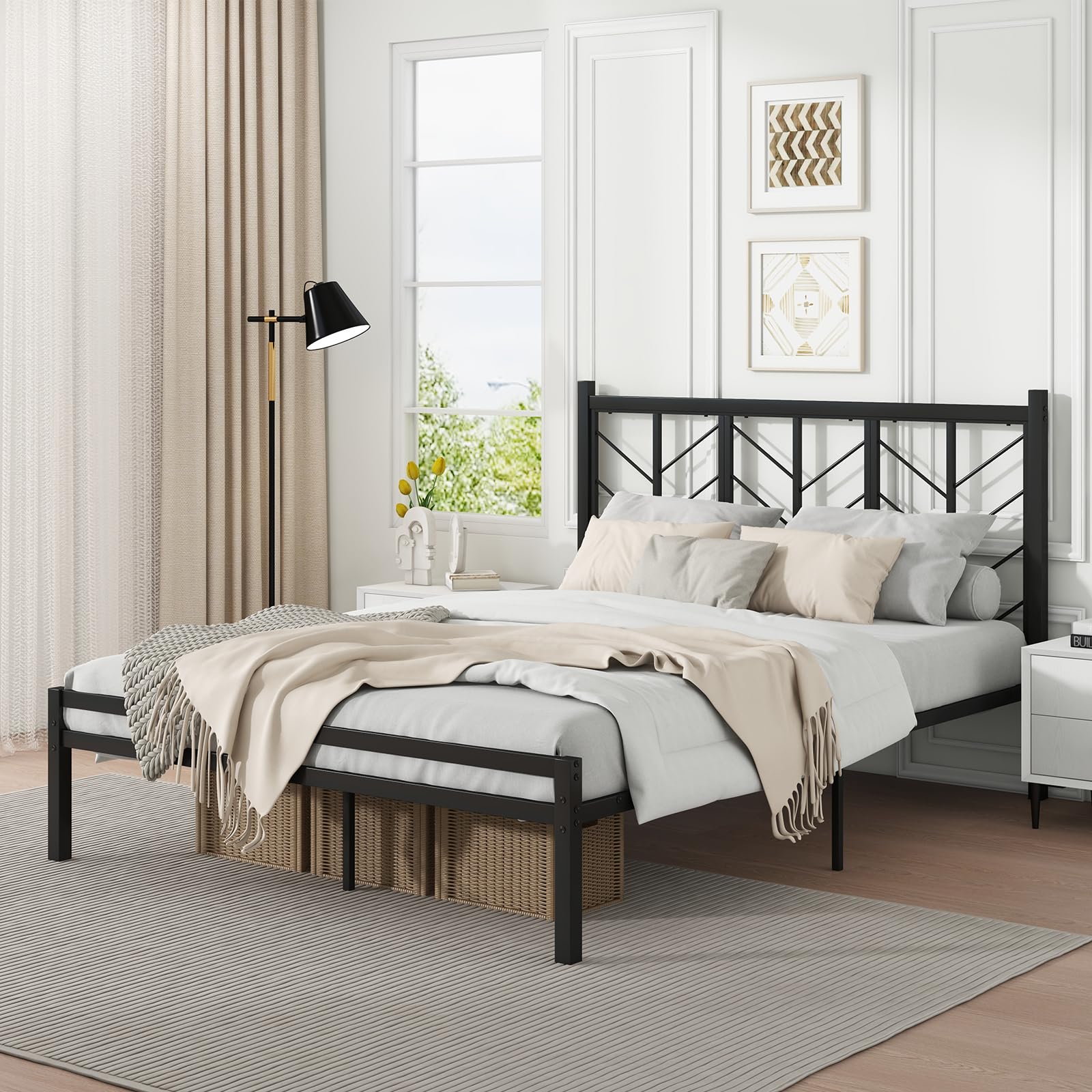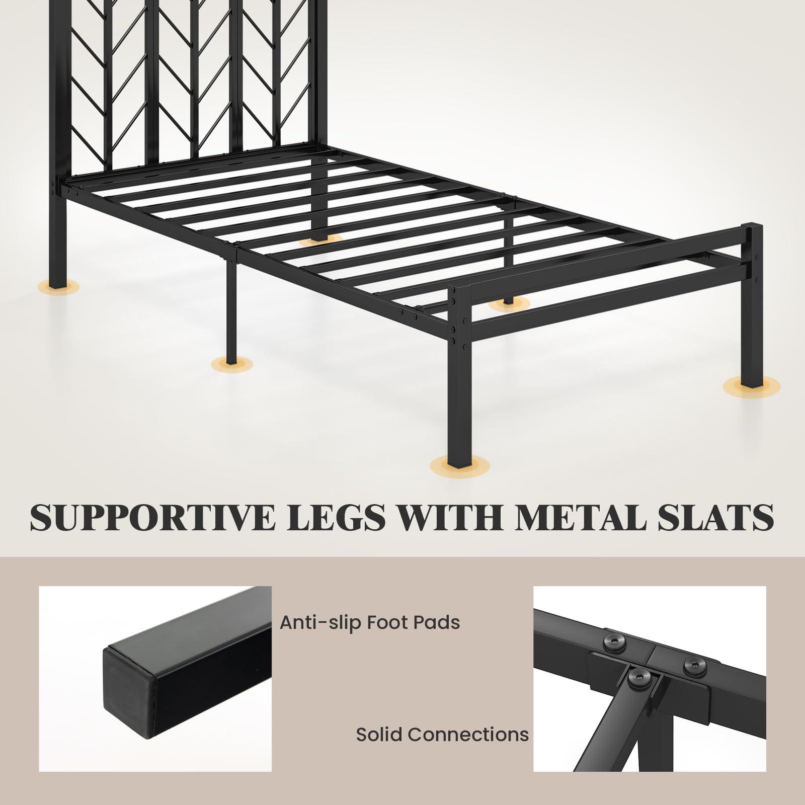 - [Sturdy & Reliable Construction]: Crafted with solid metal side rails and multiple support legs, this frame ensures exceptional stability and durability. With 11 metal slats providing robust mattress support, there's no need for a box spring. It supports up to 620 lbs, making it both strong and reliable.
