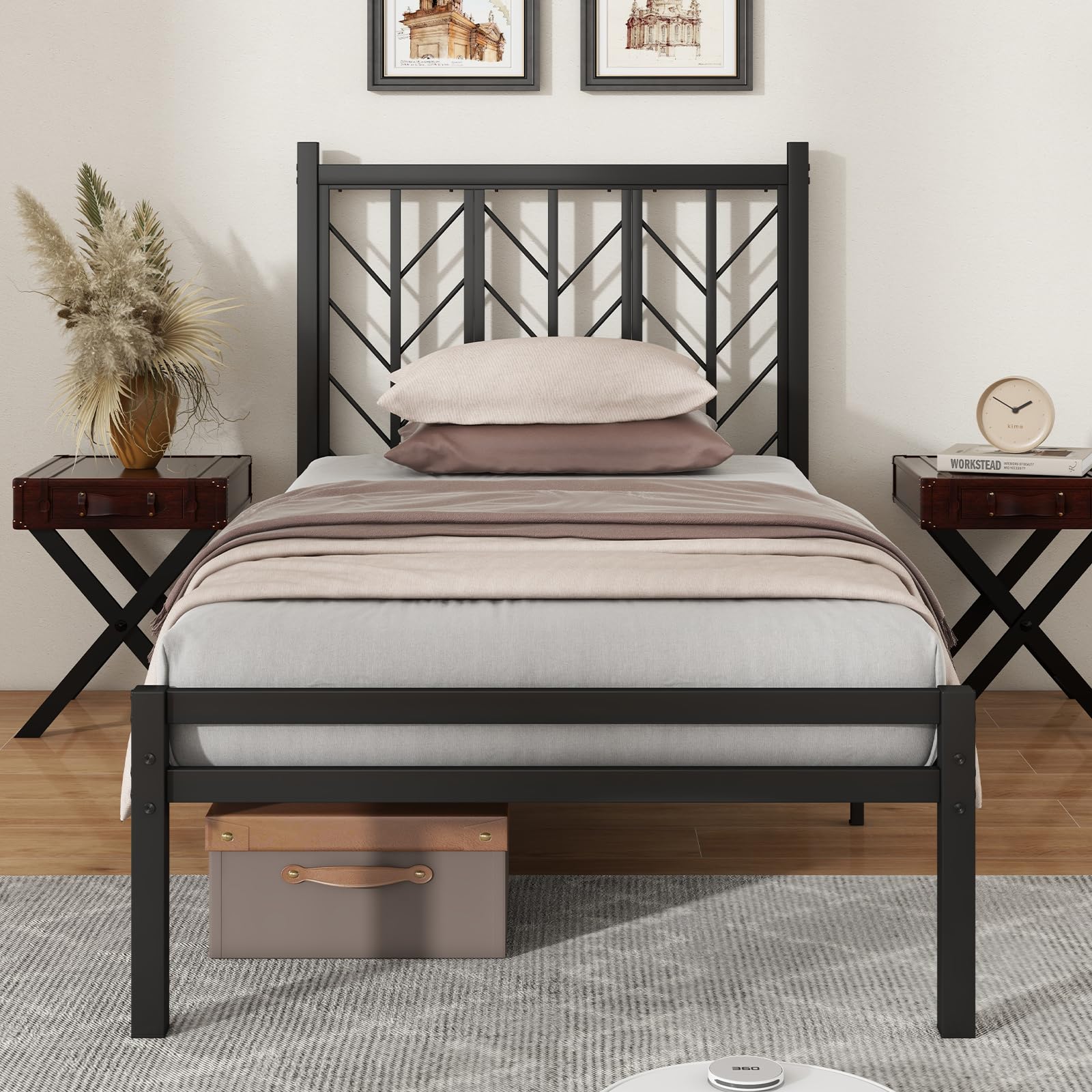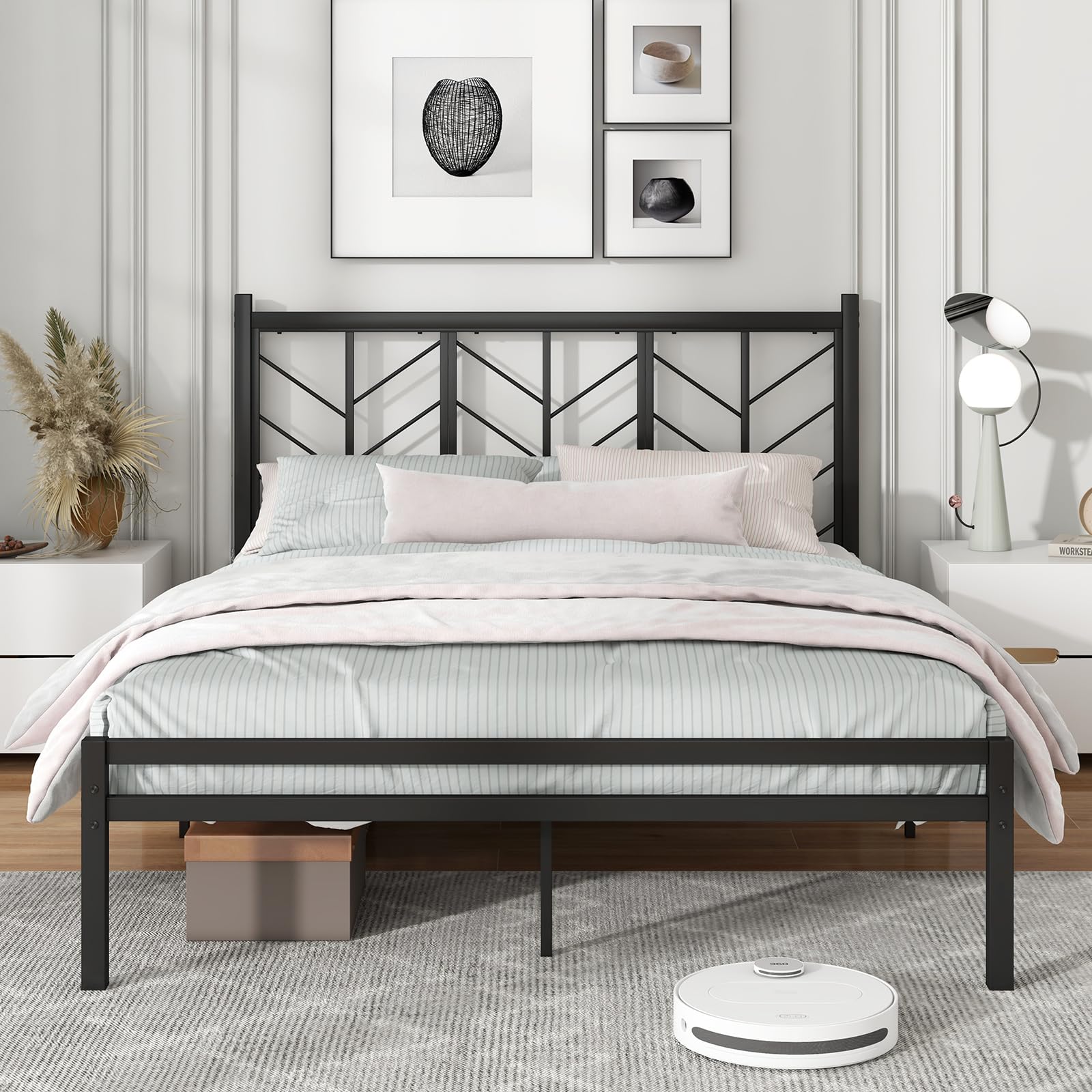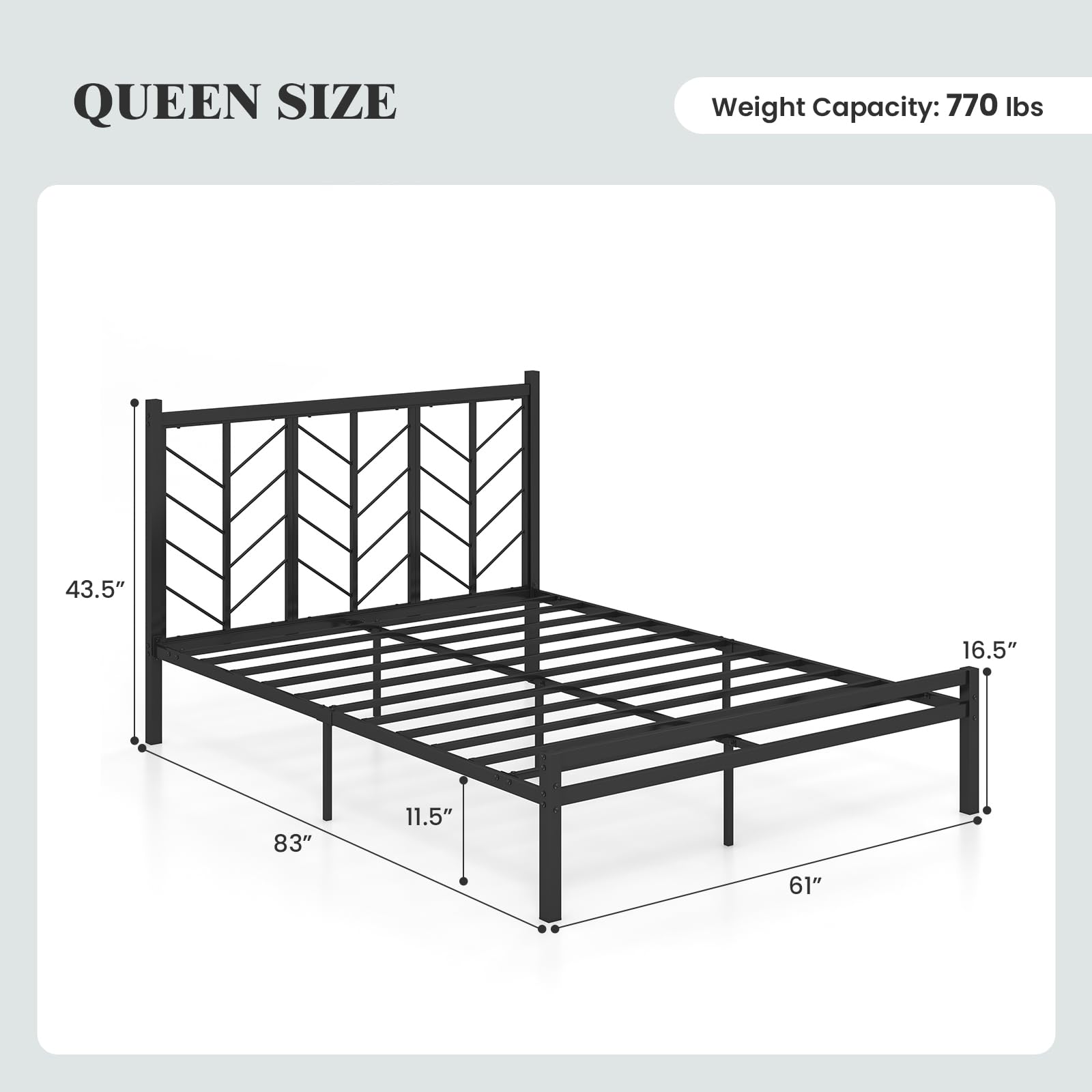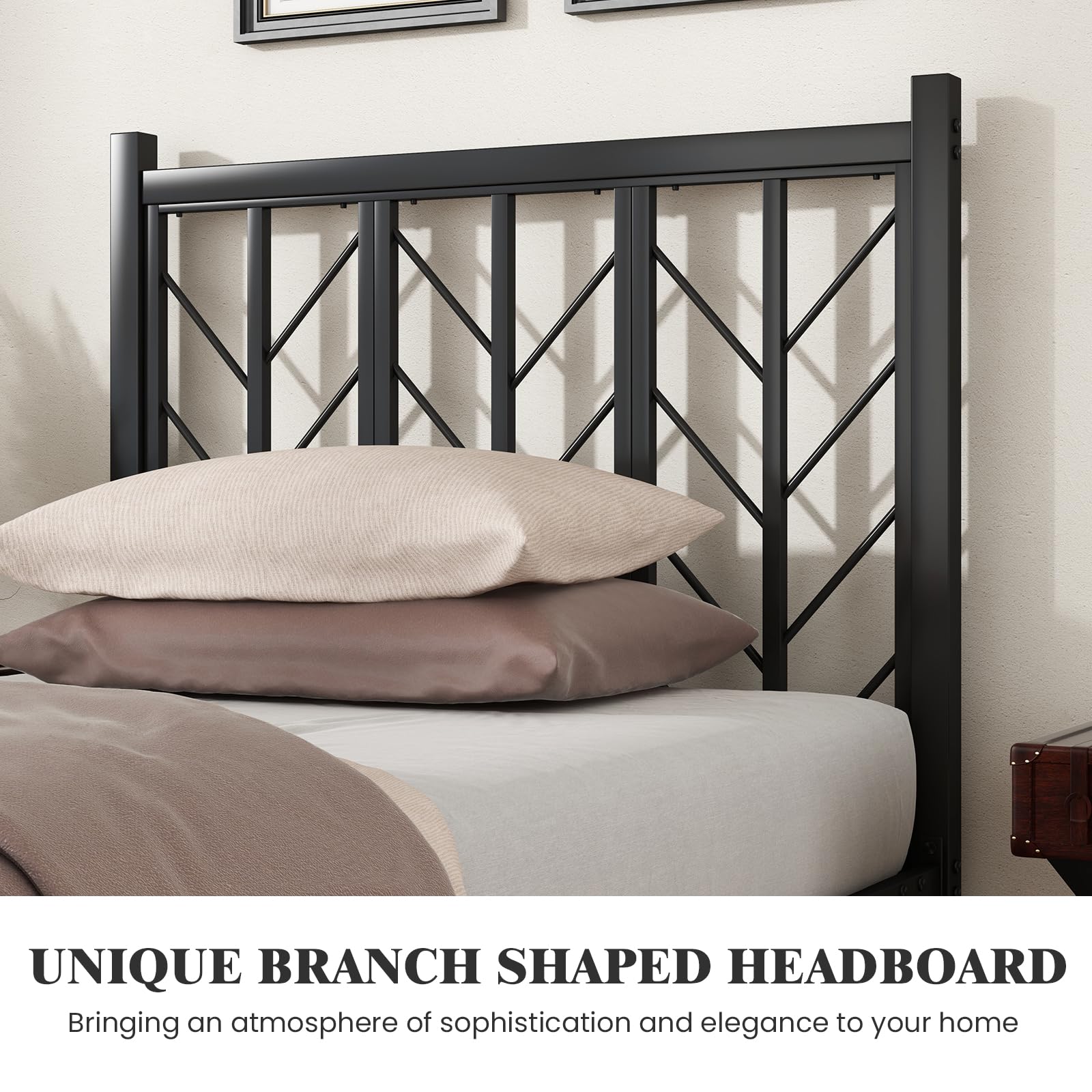 Elevate your bedroom's style with this platform bed, featuring a chic branch-designed headboard that adds a touch of natural elegance to any decor. The heavy-duty platform bed frame is reinforced by 11 sturdy metal slats, offering superb stability and ensuring a long-lasting investment. With 11.5 inches of clearance beneath the bed, you’ll have ample space to store boxes, linens, or other essentials, helping to keep your sleep area neat and organized. Ideal for those looking to add a unique flair to their bedroom, this metal platform bed combines stylish design with practical functionality.