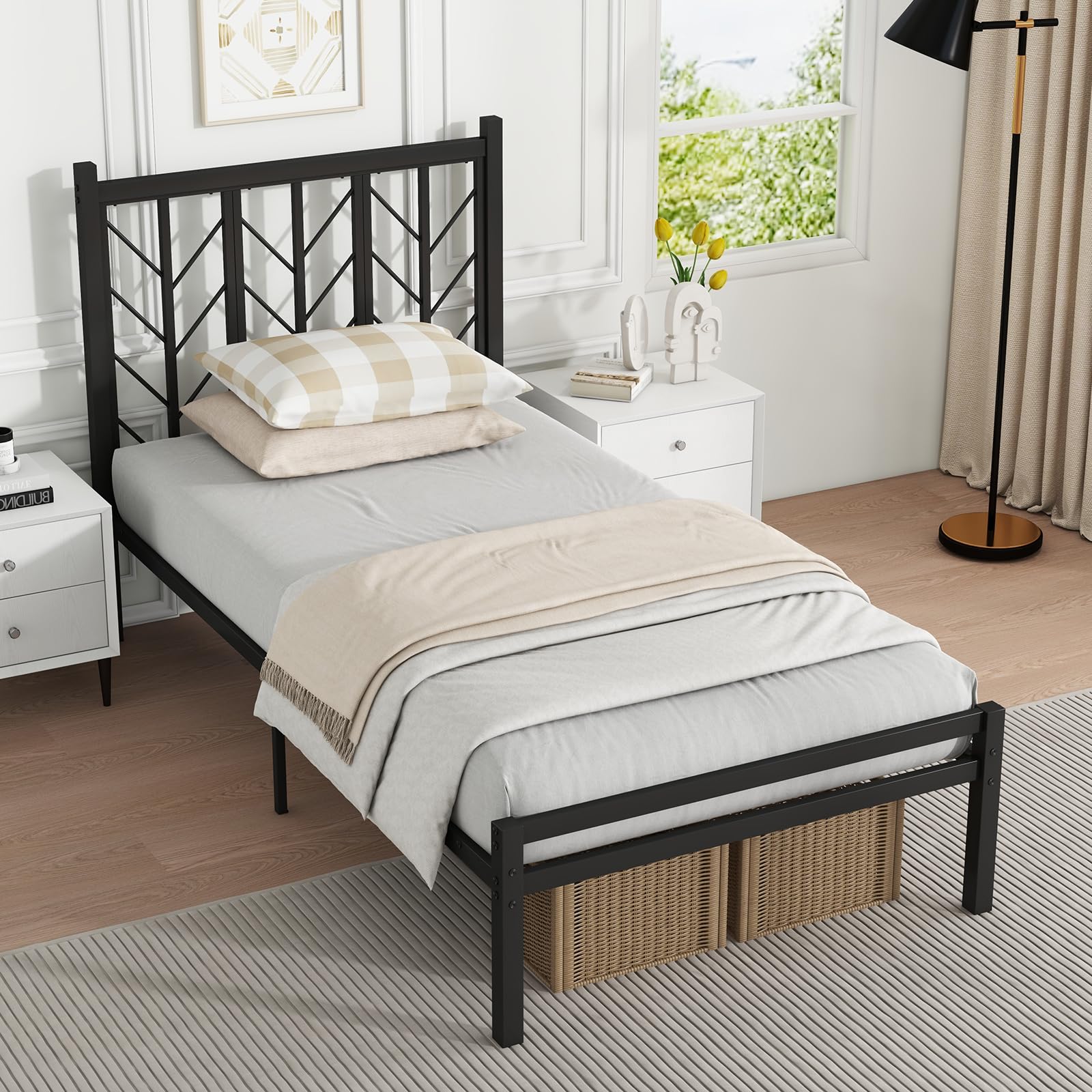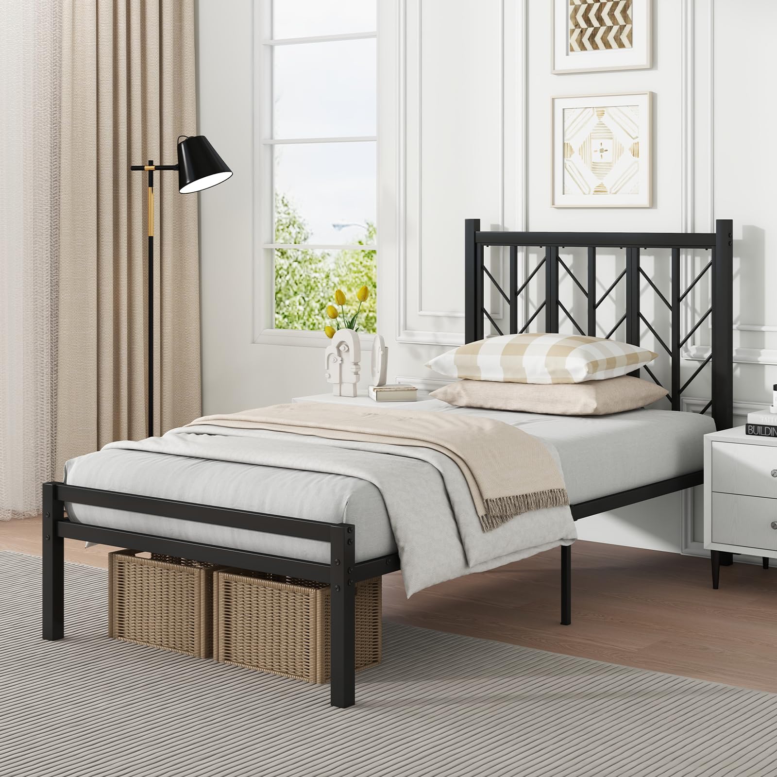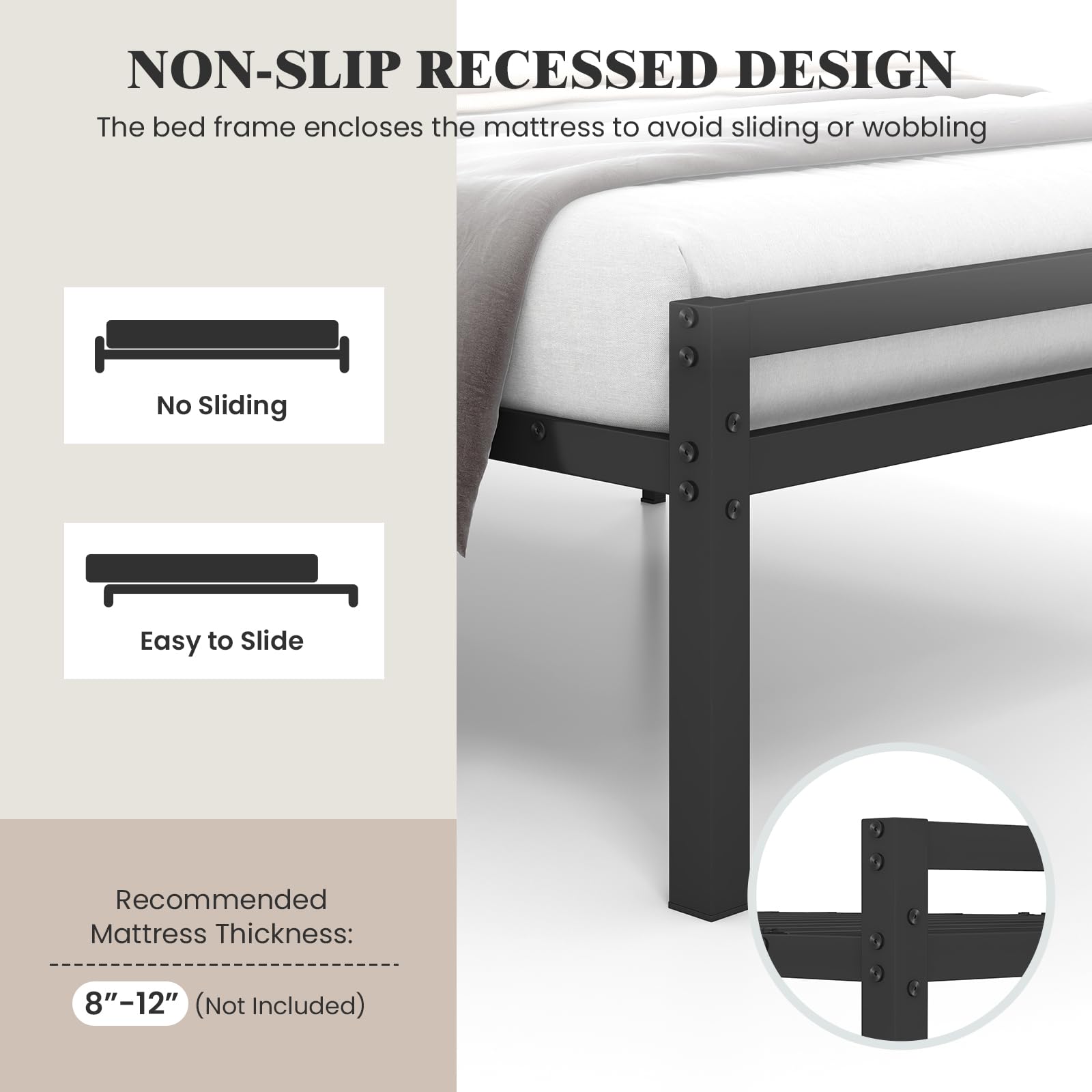- [Secure Mattress Fit]: The heavy-duty mattress foundation offers exceptional support without the need for a box spring. Additionally, sponge pads on the metal slats minimize friction and noise, ensuring a peaceful and undisturbed night’s sleep.