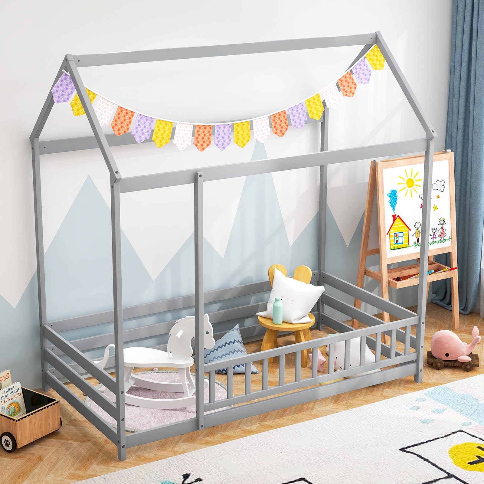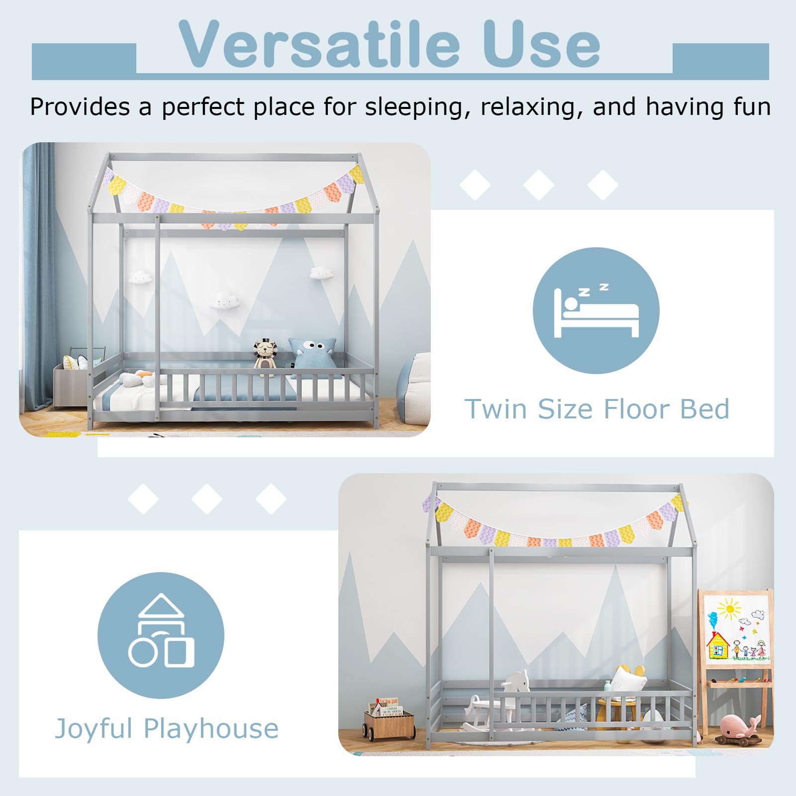 - [Versatile House Floor Bed]: Our house bed allows you to place your mattress directly on the floor. Beyond offering a cozy spot for nightly rest, it doubles as a joyful playhouse where kids can relax and have fun, effectively meeting diverse needs.