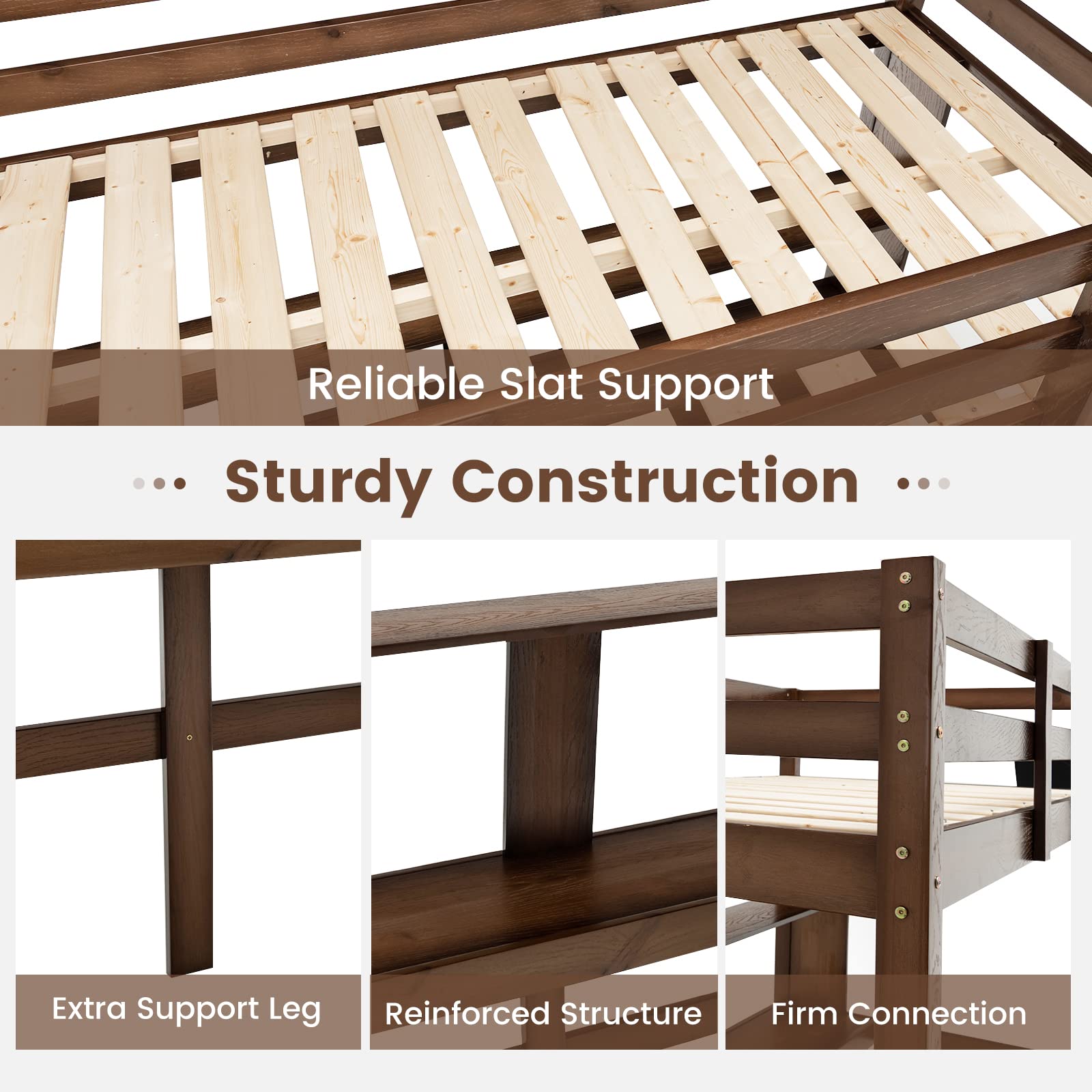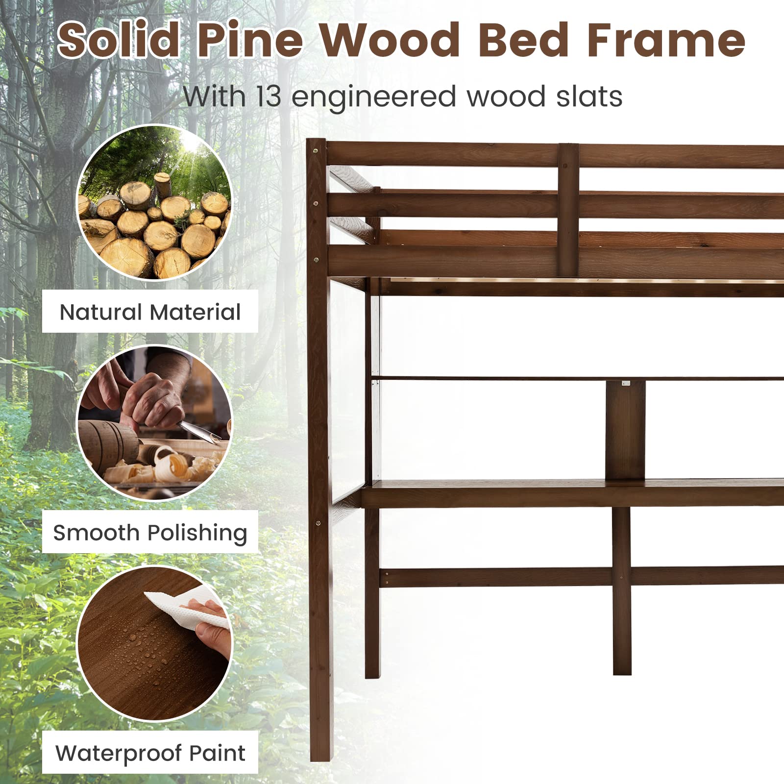 Solid pine wood bed frame can support up to 330 lbs