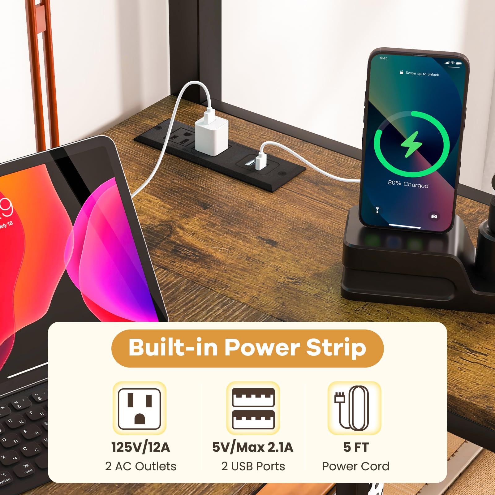 Built-in power strip offers multiple outlets to keep your devices plug-in and charged