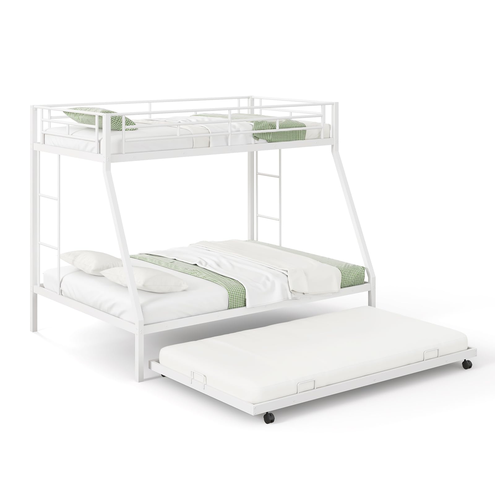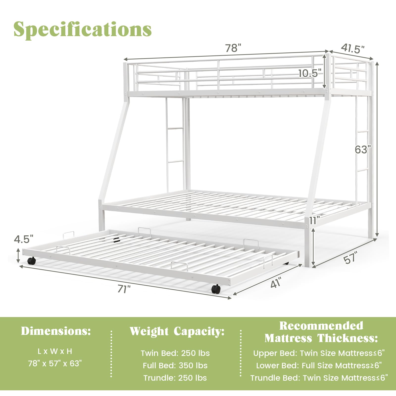 - [350 LBS & 250 LBS Weight Capacity] The frame of our bunk bed is made of heavy-duty metal for excellent strength. The solid construction of the full bed provides a load-bearing capacity of up to 330 lbs, while the twin bed and the trundle bed each hold 250lbs.