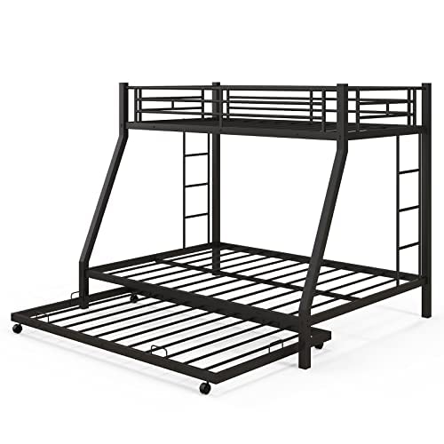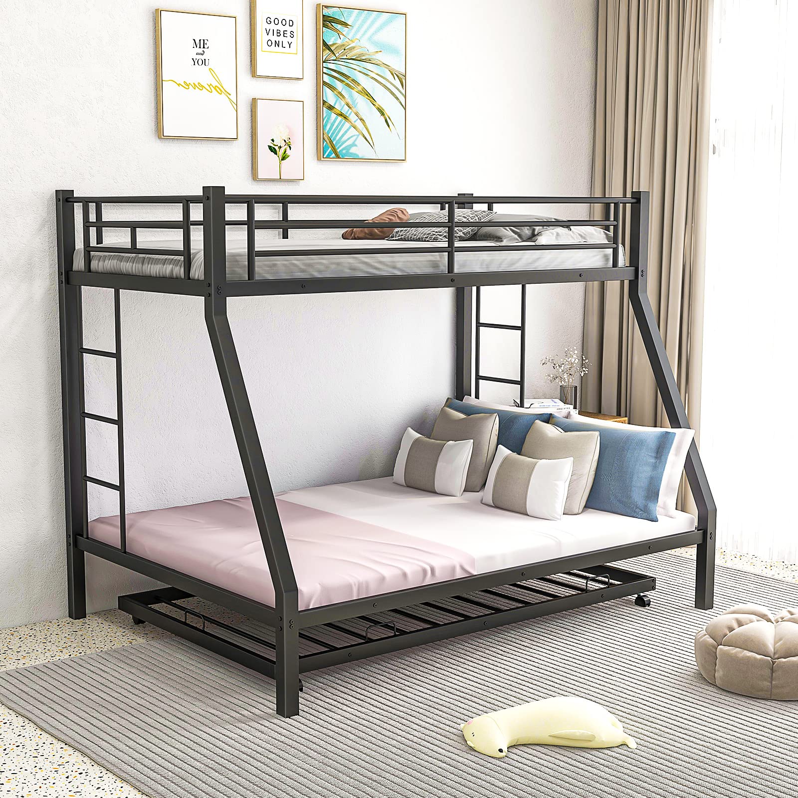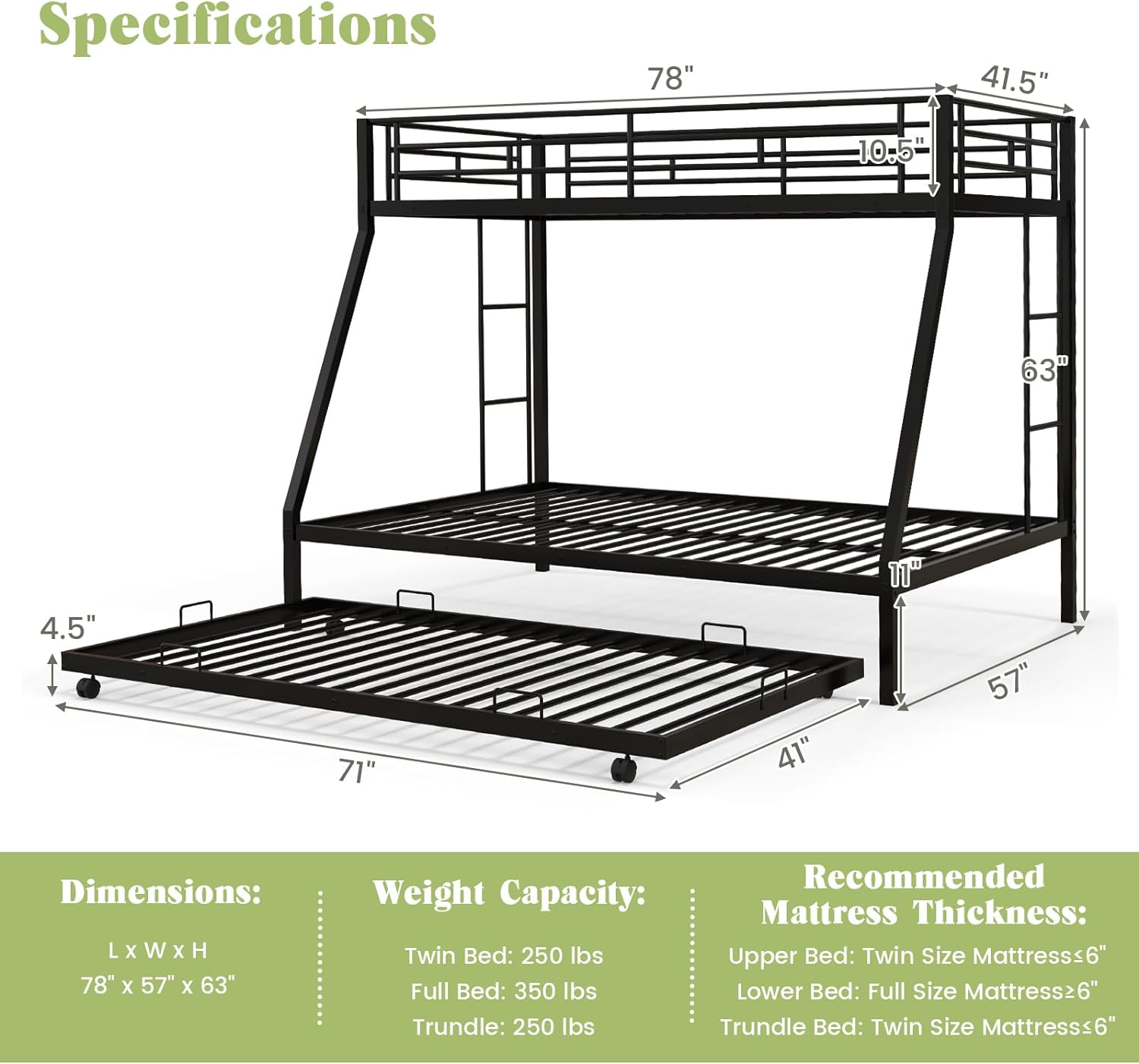 - [350 LBS & 250 LBS Weight Capacity]: The frame of our bunk bed is made of heavy-duty metal for excellent strength. The solid construction of the full bed provides a load-bearing capacity of up to 330 lbs, while the twin bed and the trundle bed each hold 250 lbs.