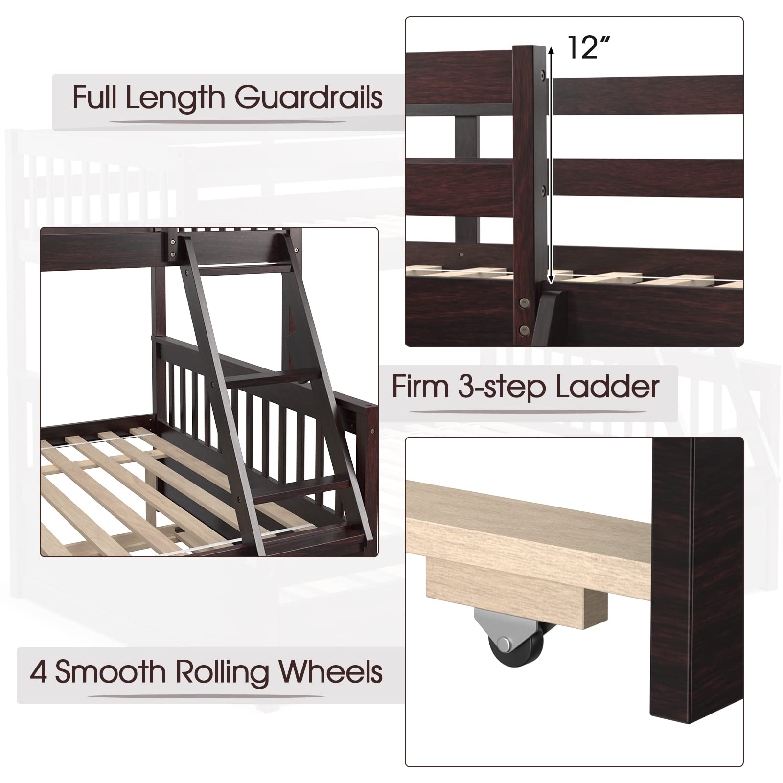 - [Space-Saving Bed with Trundle]: The trundle bed is equipped with 4 smooth rolling casters for easy pulling out and is compatible with a mattress thickness of 4"-5", expanding extra sleep space for guests or families with several kids. Additionally, the twin-over full bunk bed is easy to fit snugly in a compact room to maximize your limited space.