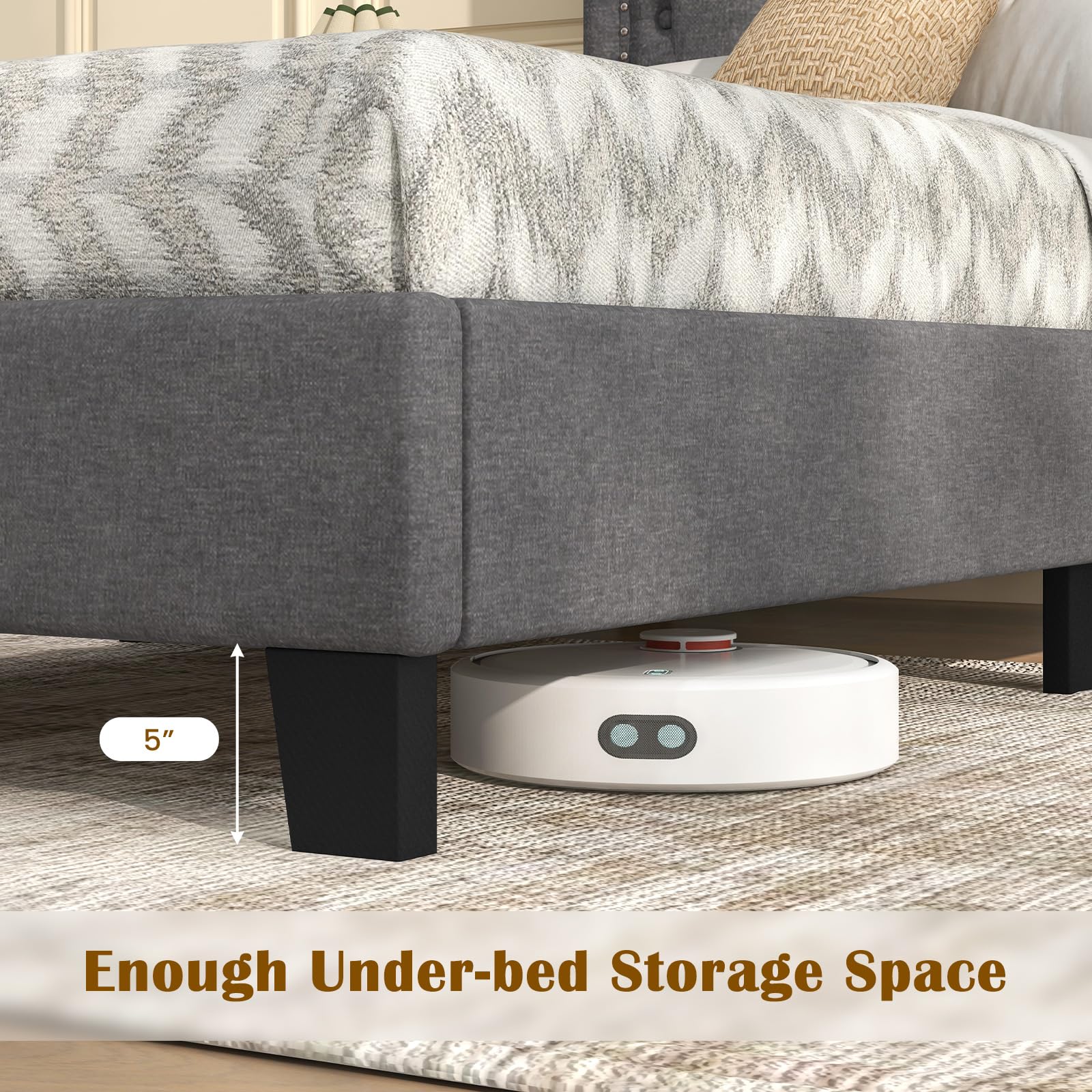 - Premium Linen Upholstery: Crafted with breathable linen fabric, this modern bed frame adds a soft and inviting feel, making it an eye-catching centerpiece for your bedroom. The soft filling material offers comfortable night's sleep.