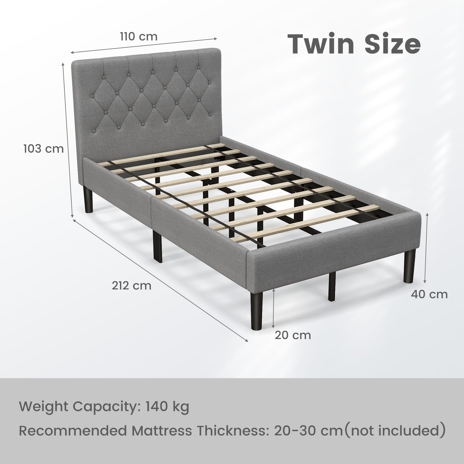- Easy Assembly & Product Size: This twin size bed frame includes all parts, detailed instructions, and necessary tools. You are able to figure out how to put all parts together. Overall Dimension: 83.5” x 43.5” x 40.5”(L x W x H)