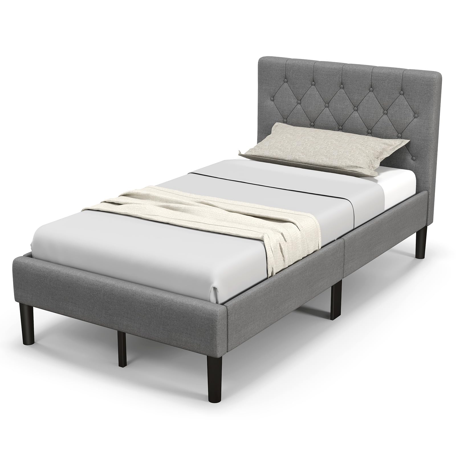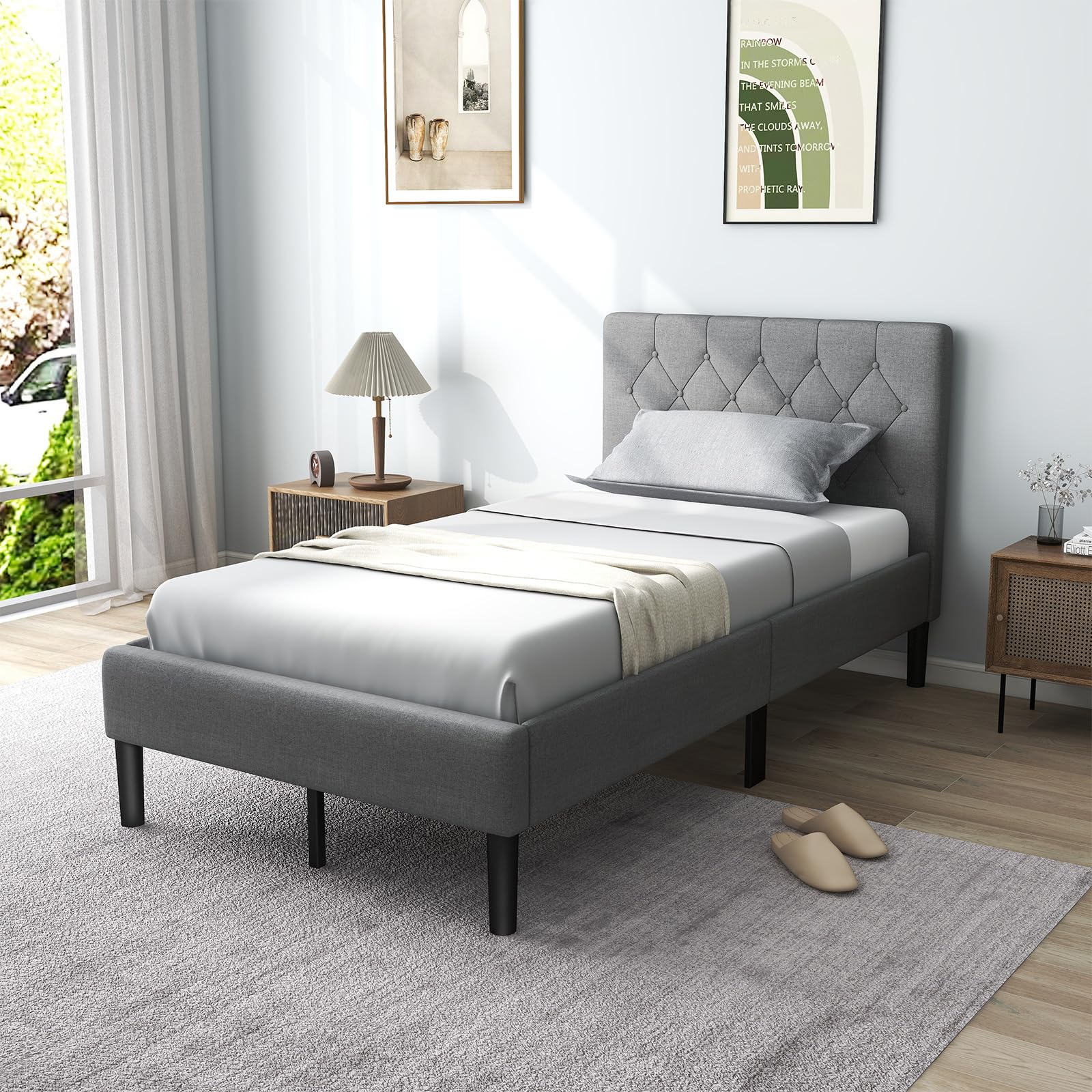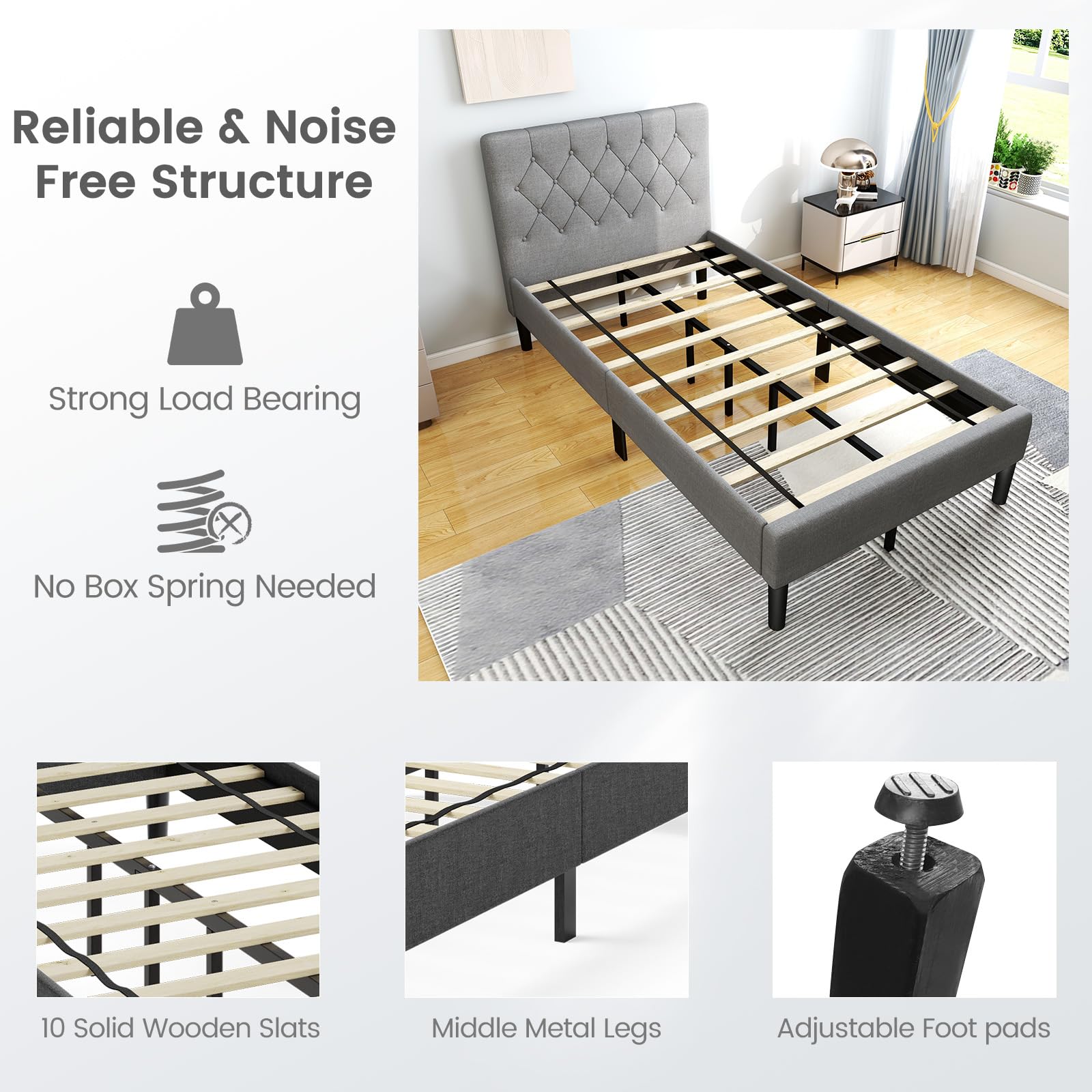 - Unique & Aesthetic Appearance: This platform bed with modern headboard is an elegant and practical addition to any bedroom. More, stylish button tufted design and upholstery make up a high-quality and understated appearance.
