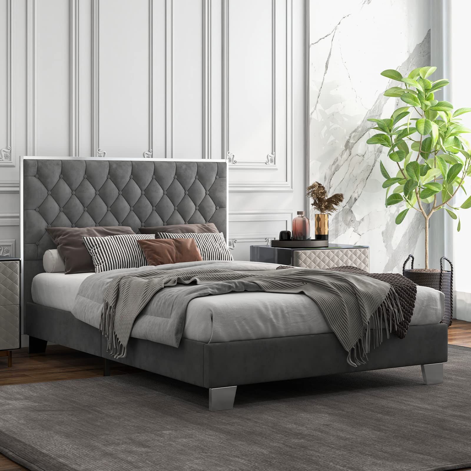 Giantex Upholstered Bed Frame, Modern Platform Bed