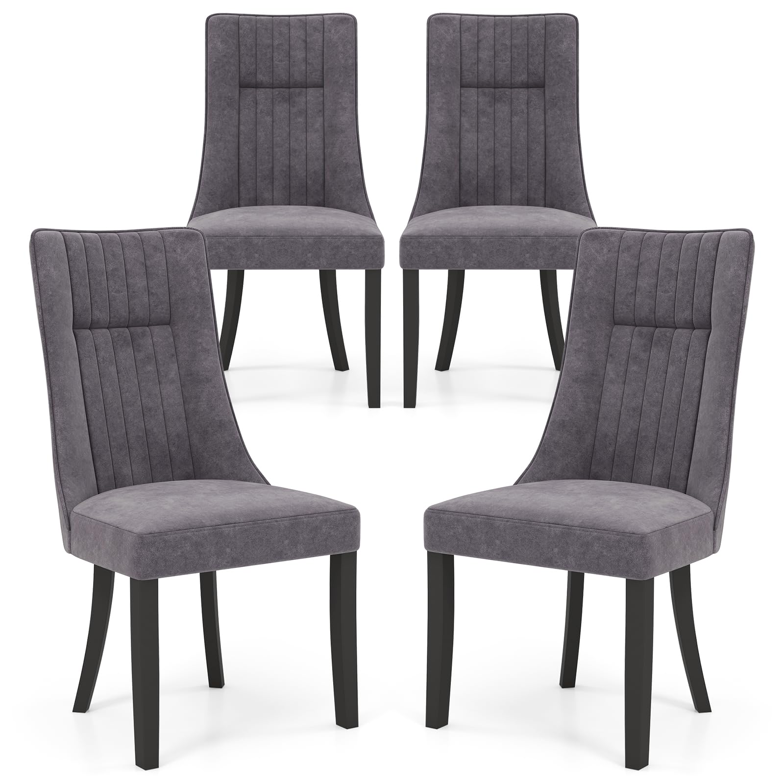 Crafted with a stylish channel tufted backrest, the fabric dining chairs adds a touch of elegance to your space. Whether you're looking to upgrade your dining room, add seating to your living room, or furnish your restaurant, these dining room chairs are the perfect choice. The backrest and seat with soft foam padding and smooth velvet upholstery provide optimal comfort, ensuring enjoyable dining experience. Additionally, the ergonomic high backrest with curved & tilted design provides excellent support and promotes good posture. Supported by sturdy rubber wood legs, these dining chairs are built to last. With a weight capacity of up to 330 lbs, you can rest assured that these chairs are stable for everyday use. Versatile and chic, these mid-century dining chairs are a perfect choice for a variety of spaces.