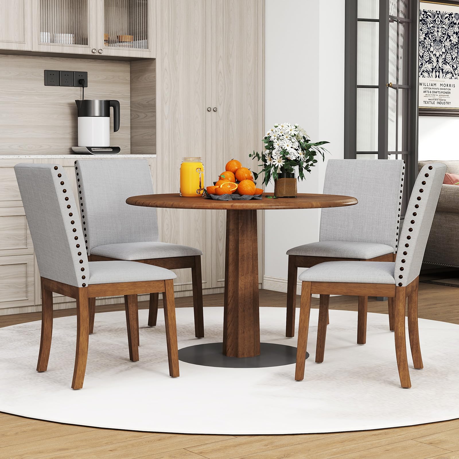 Featuring a nailhead trim on the backrest, the diner chairs exude sophistication and style, making them perfect for a wide range of settings. Wrapped in a wear-resistant linen fabric, the kitchen chairs are incredibly comfortable. The gentle padding with foam provides a soft retreat for relaxation, ensuring that you can enjoy meals or engaging conversations without any discomfort. Additionally, the ergonomic backrest with an optimal tilt promotes a healthy sitting posture, offering outstanding support during those extended dining sessions. Furthermore, the sturdy rubber wood legs and reinforced seat frame can withstand a maximum weight of up to 400 lbs, ensuring that you can enjoy these chairs for years to come.