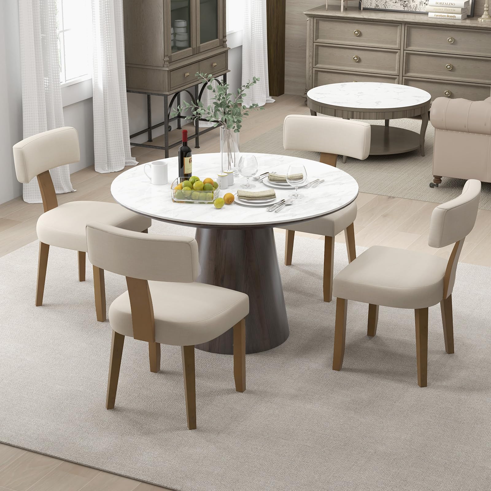 Featuring many humanized designs, each kitchen chair has a curved backrest engineered at a 100° angle for optimal support, complemented by a padded seat filled with thickened high-density sponge. The seat and back cushion are wrapped in skin-friendly polyester fabric and perched on sturdy rubber wood legs. In addition, these dinette chairs with a robust wood frame look elegant and blend seamlessly into any indoor setting, lasting for a long time. The dining chairs are also equipped with anti-slip foot pads for stability and floor protection.