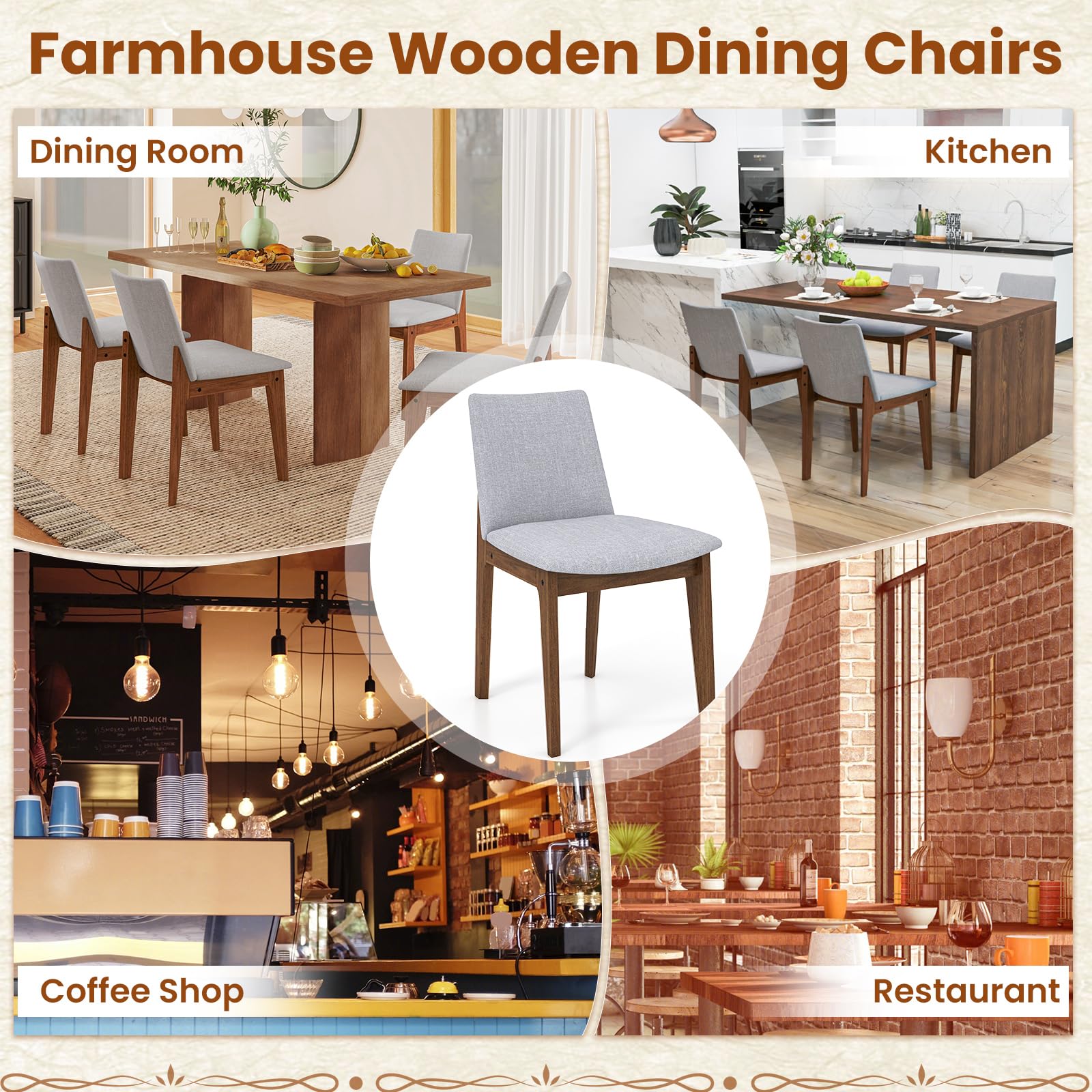 - [Versatile Use]: Featuring chic gray cushions and sophisticated walnut wood legs, these farmhouse-style wooden dining chairs make a stylish statement in various settings such as formal dining rooms, modern kitchens, cozy offices, or trendy living rooms.