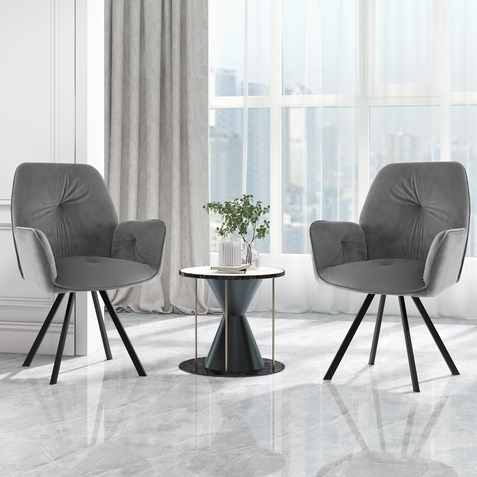 - [Exquisite Look for Versatile Use]: Featuring gray button tufted fabric and black legs, our swivel desk chairs match different decor and inject a charming flair to your living space. These accent chairs can be widely used in the living room, bedroom, reception room, study or bedroom.