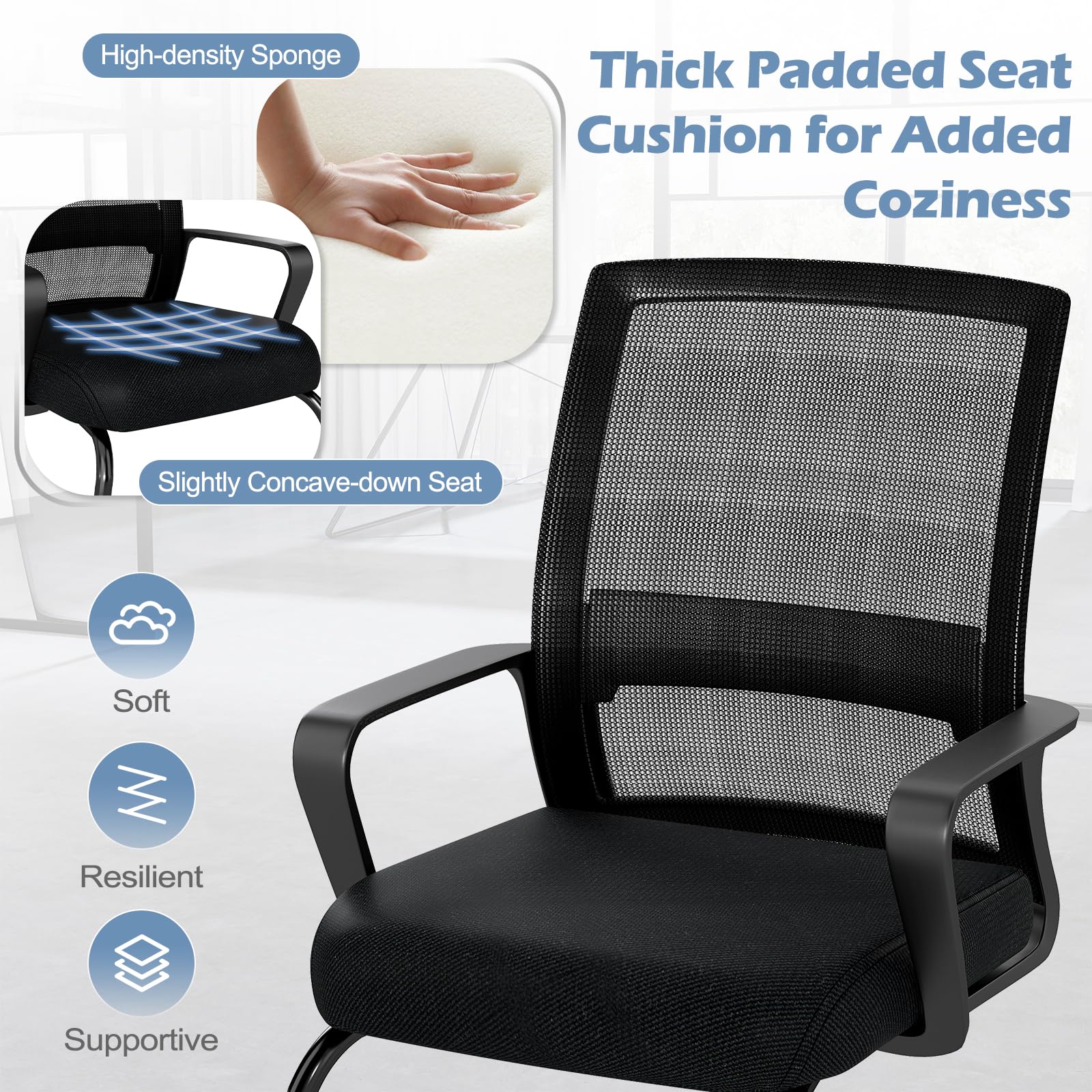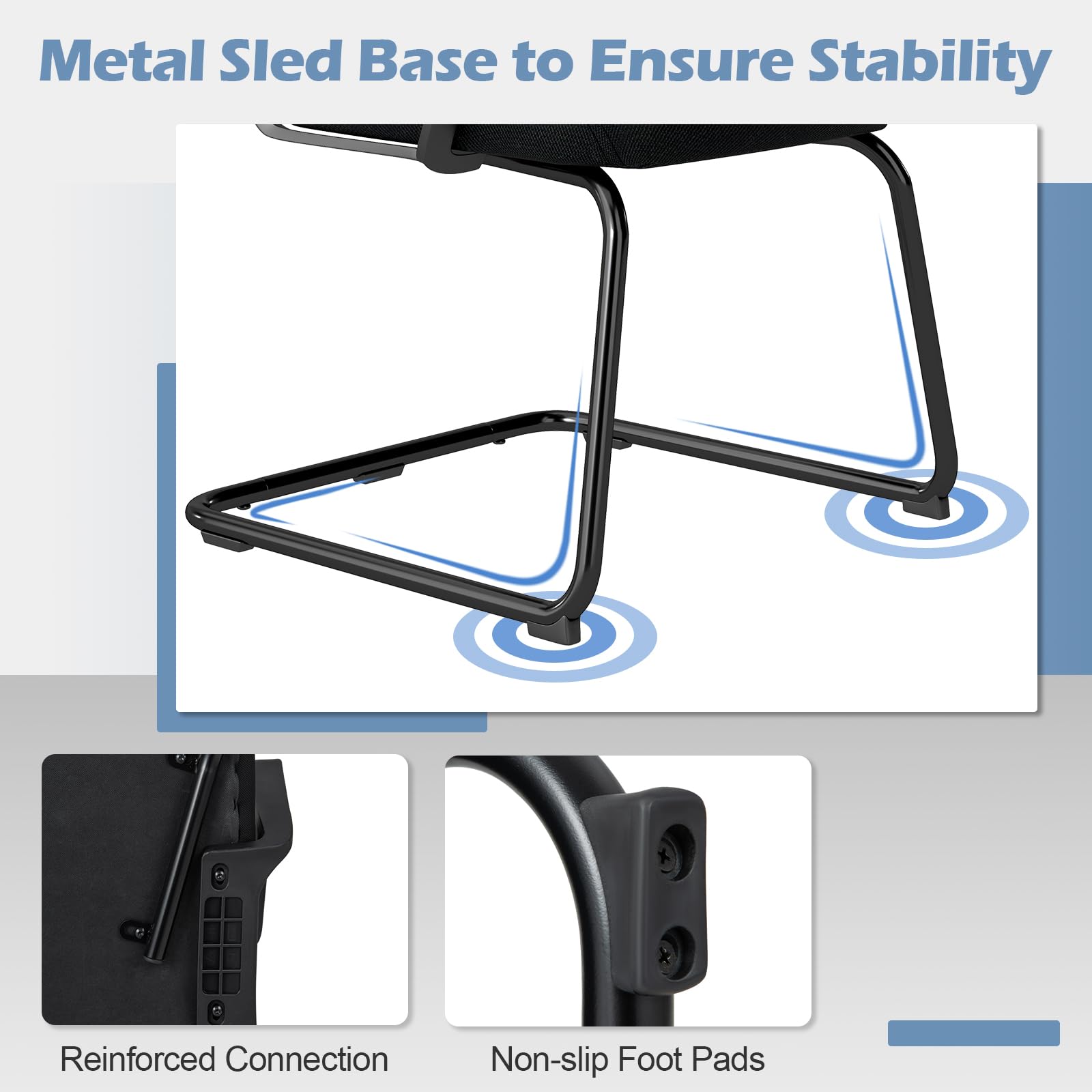 Featuring ergonomic mesh backrests and lumbar support, the waiting room chairs ensure maximum comfort for your guests during long waits. Each chair is equipped with integrated armrests for additional support and comfort. Moreover, enjoy the luxurious feel of resilient sponge padded seats that offer plush comfort and durability. Built on a metal sled base, these conference chairs boast exceptional sturdiness and a high weight capacity. Together with non-slip foot pads, higher stability is ensured. The modern reception chairs provide a versatile seating solution for various places, such as conference room, clinic and office, etc.