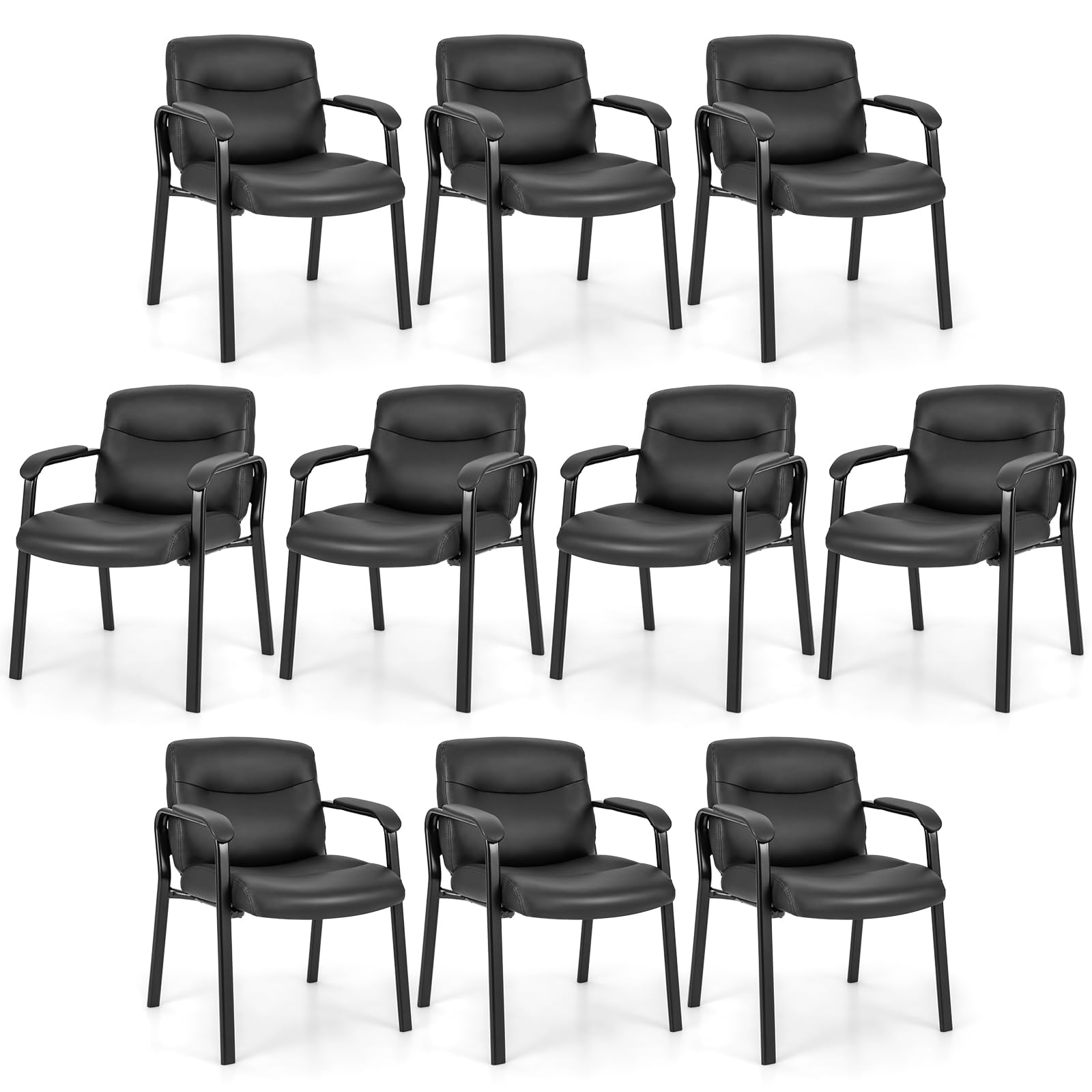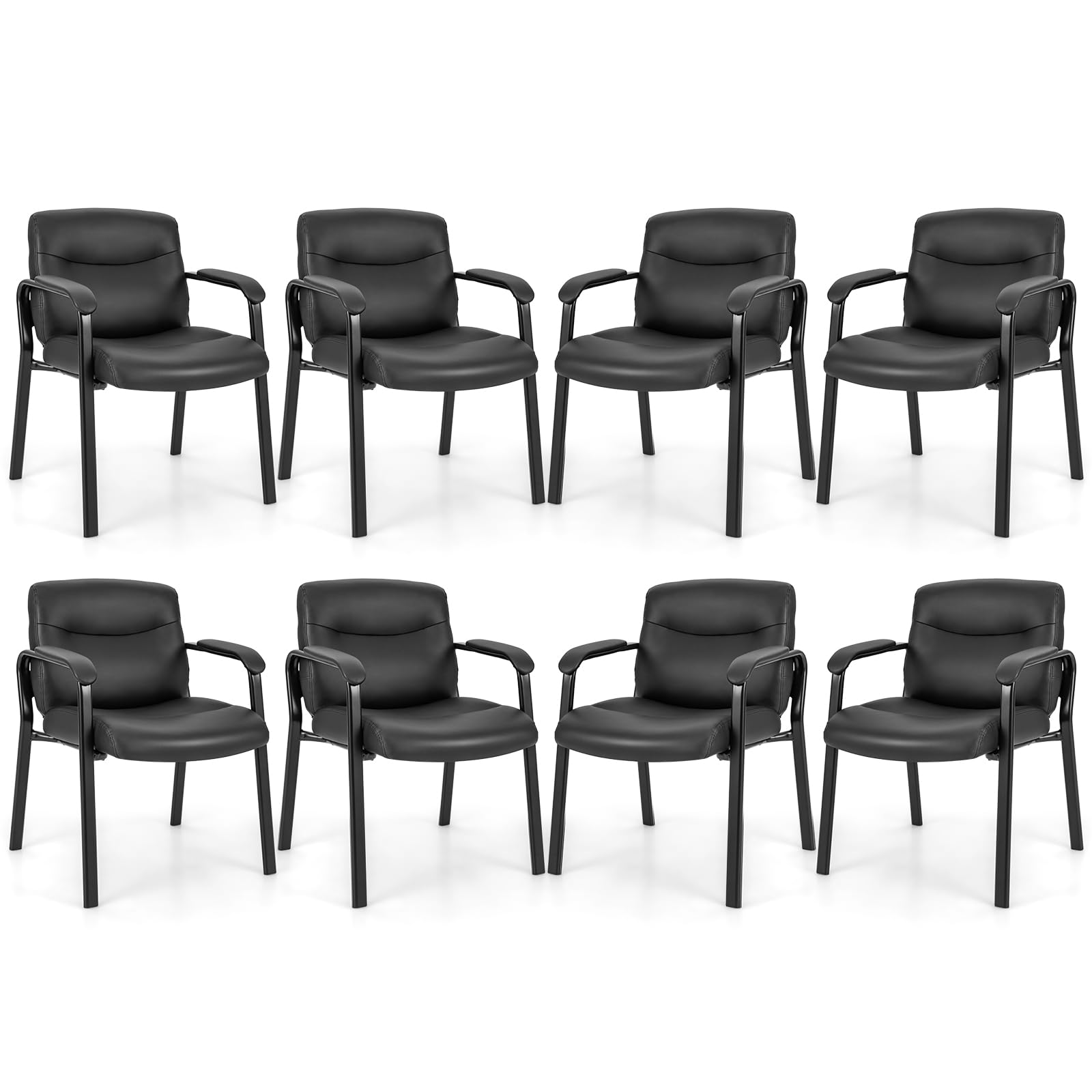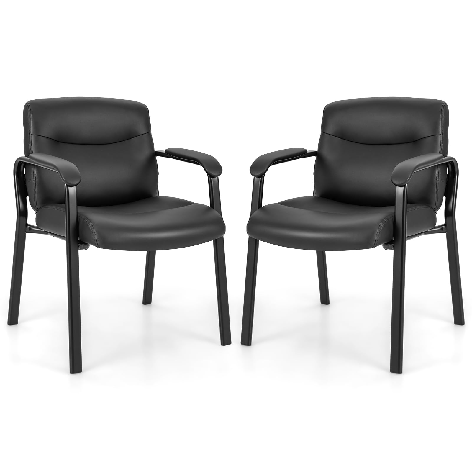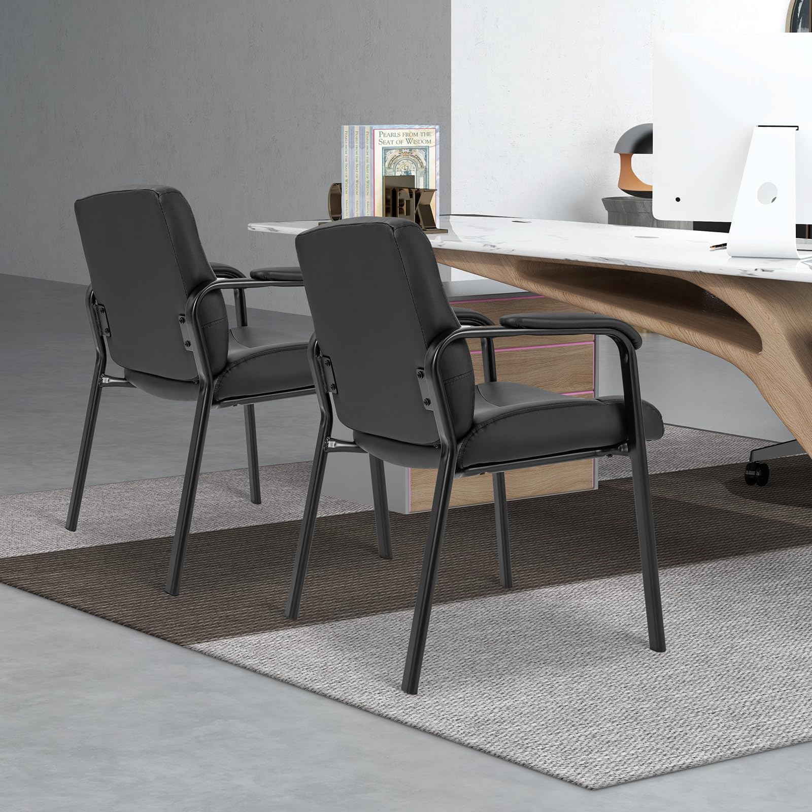 These guest chairs epitomize ergonomic design, offering superior comfort with padding and facilitating correct posture. Clad in premium PU and PVC leather, the office chairs present a sophisticated aesthetic, complemented by ease of care and longevity. The robust metal structure underpinning the chairs ensures stability and a substantial load capacity of up to 330 lbs. With their elegant, versatile design, these waiting room chairs are ideal for any professional space, from offices to conference rooms. They are designed for effortless arrangement, ensuring seamless integration into diverse spatial layouts.