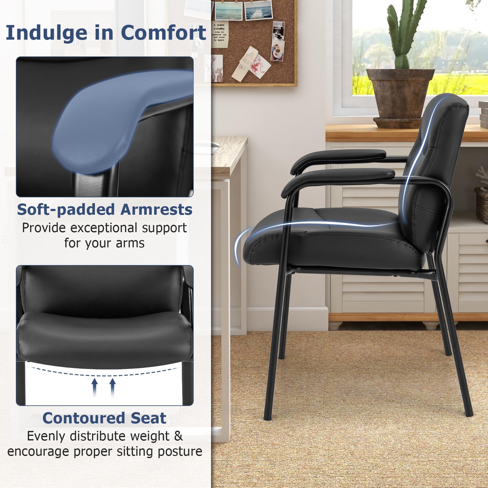 - Premium Comfort and Support: The guest chairs are designed with a focus on ergonomics, with soft-padded armrests, back and seat for an exceptional level of comfort. It promotes proper posture and support during long meetings or waiting periods.