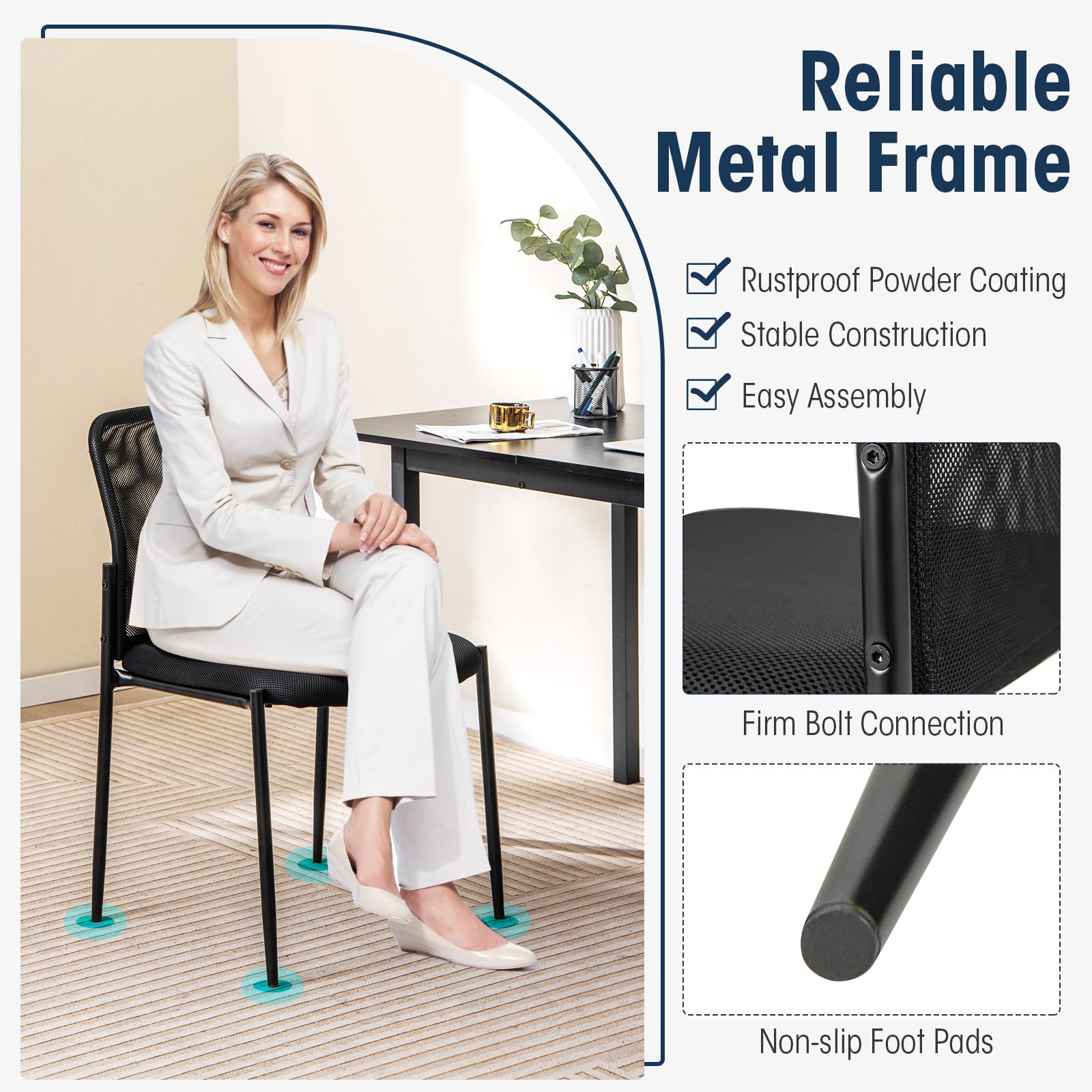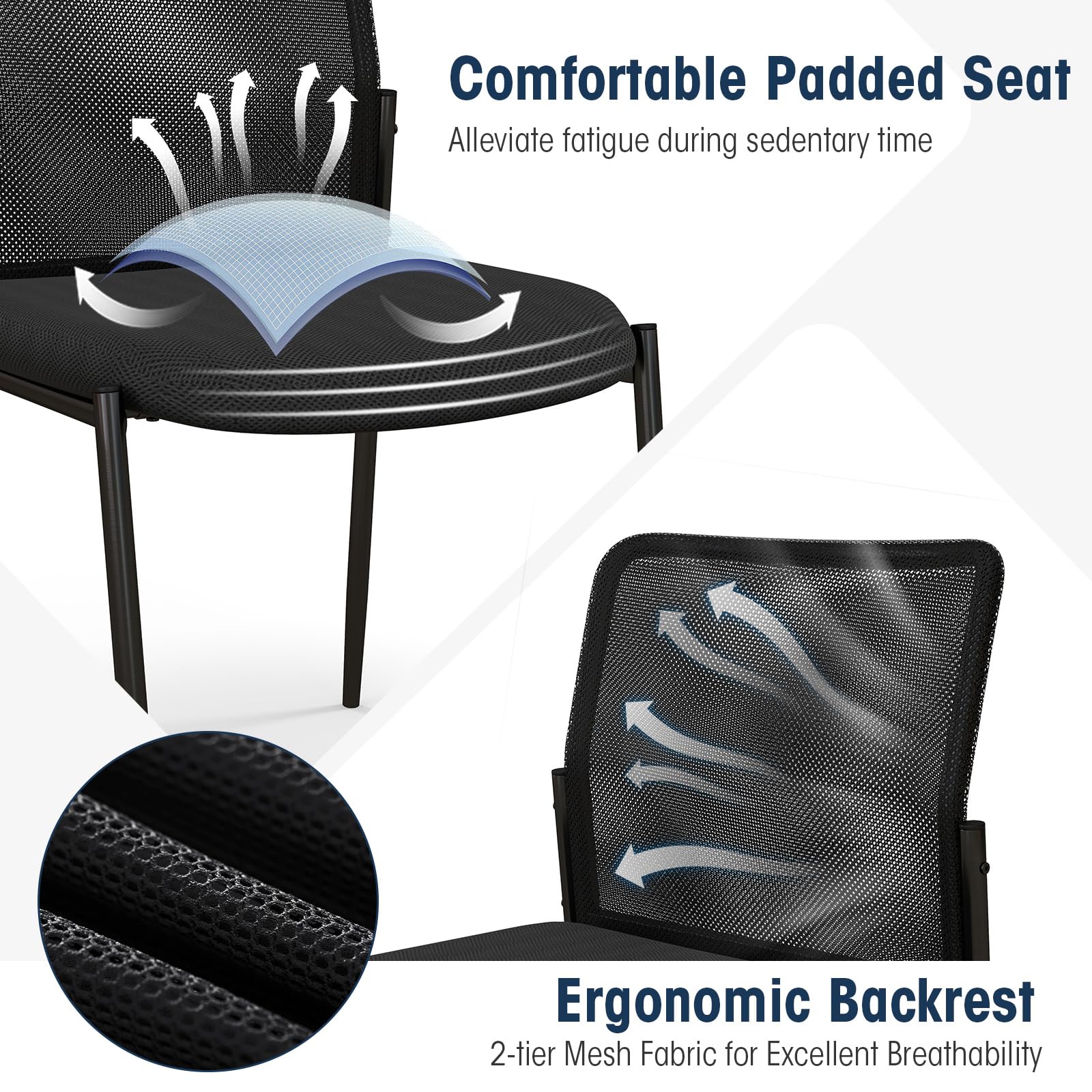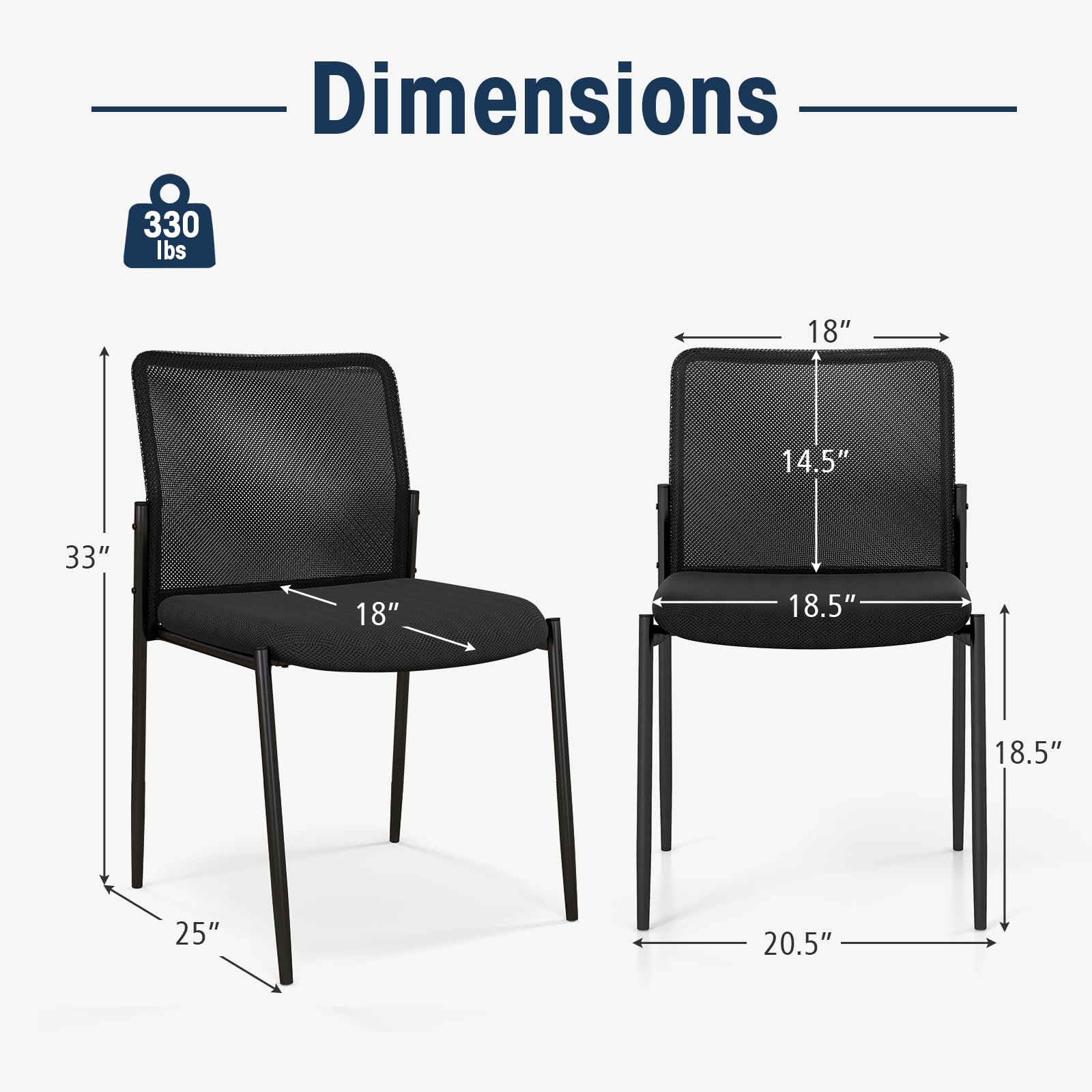 Level up your waiting room with our ergonomic mesh chairs! Get ready to experience the ultimate in ergonomic seating, as the ergonomic backrest can provide adequate support to your body and improve sitting posture. Say goodbye to sweaty seats, thanks to our 2-tier mesh fabric that provides refreshing ventilation and unbeatable durability. Furthermore, with sponge-padded seat, you can enjoy prolonged sitting comfort during meeting or waiting. Rest easy knowing the robust powder-coated metal frame boasts a maximum capacity of 330 lbs. Click now to elevate your seating experience!