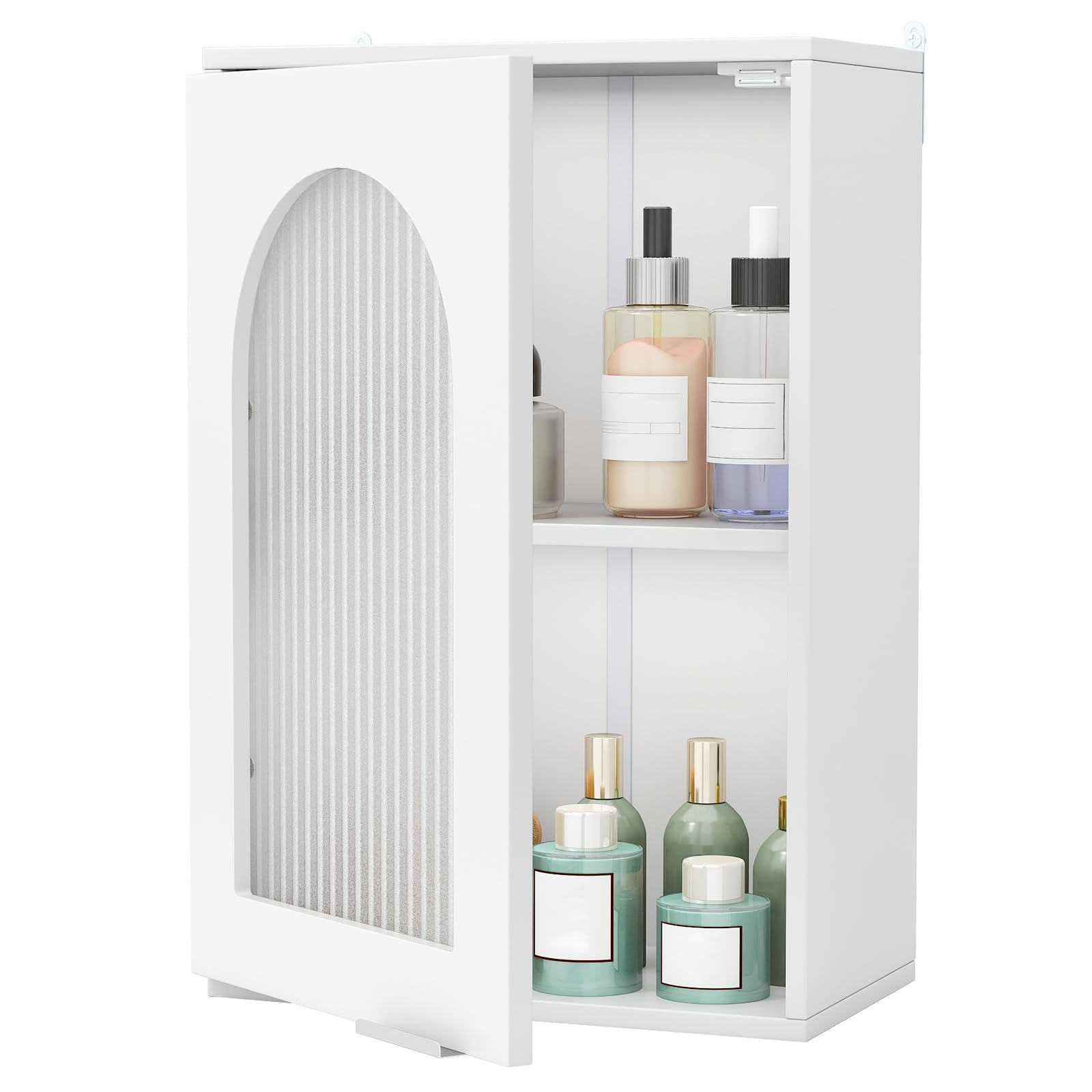 Ideal for tight spaces, this wall-mounted unit features a 3-position adjustable shelf with 1.3” spacing, perfect for storing everything from towels to toiletries. The fluted tempered glass door, complete with a sturdy metal handle and magnetic catch, ensures both style and substance, keeping your items clean and easily accessible. Crafted from thick, robust materials, this cabinet promises durability and easy maintenance. With its versatile design, it seamlessly fits not just in bathrooms but also in kitchens, laundry rooms, and dining areas, bringing organized serenity to any corner of your home.