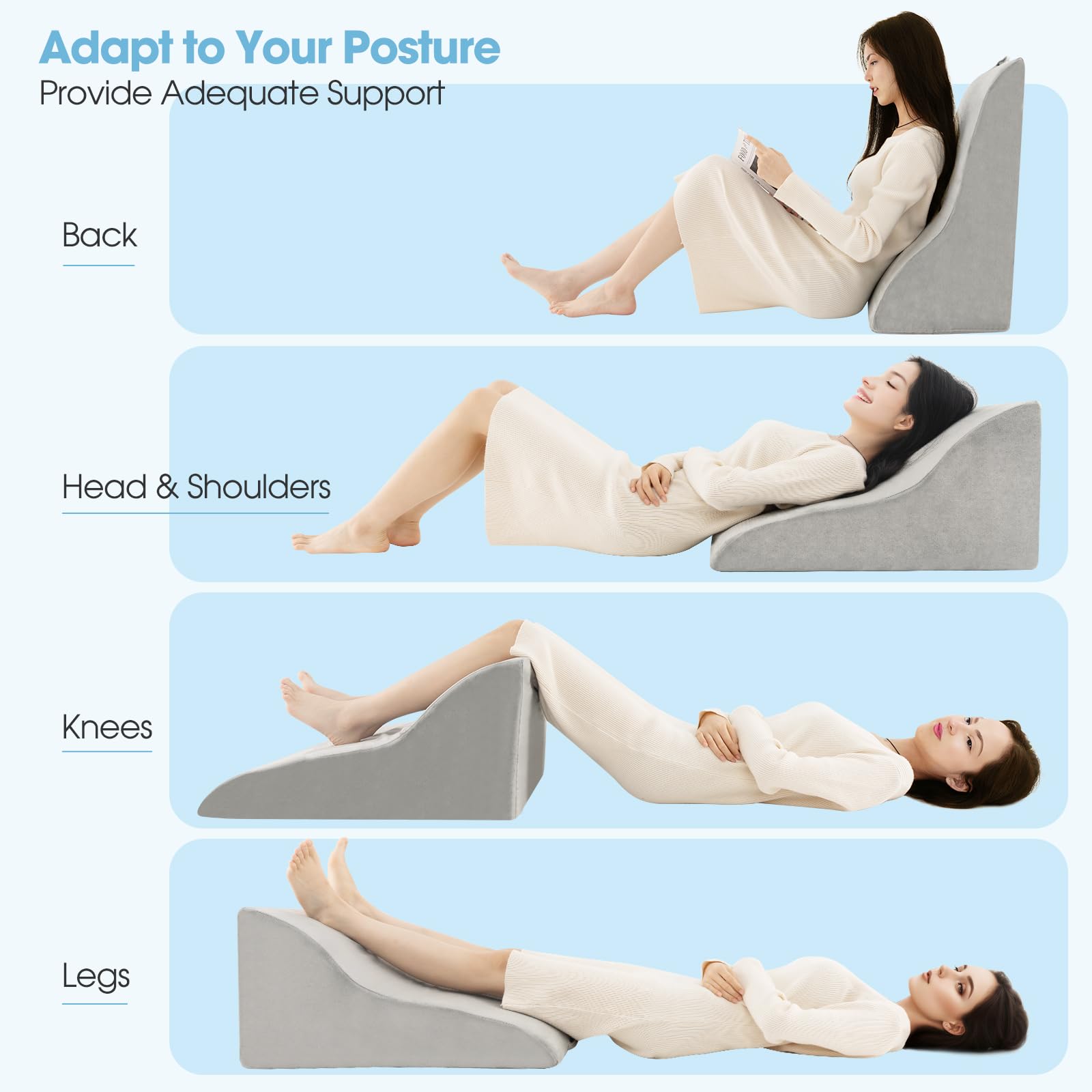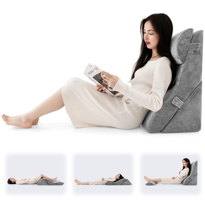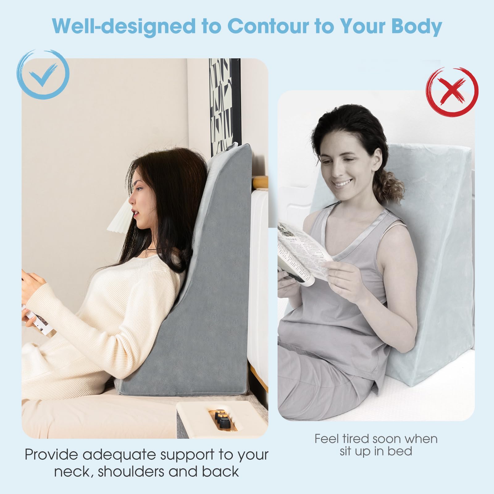 - Improve Sleep Quality: Experience a restful night’s sleep with our triangle pillow. Its elevation helps alleviate snoring, relieve back pain, alleviate acid reflux, promote blood circulation, avoid leg swelling and help with other sleep-related issues, allowing you to wake up feeling refreshed and rejuvenated.
