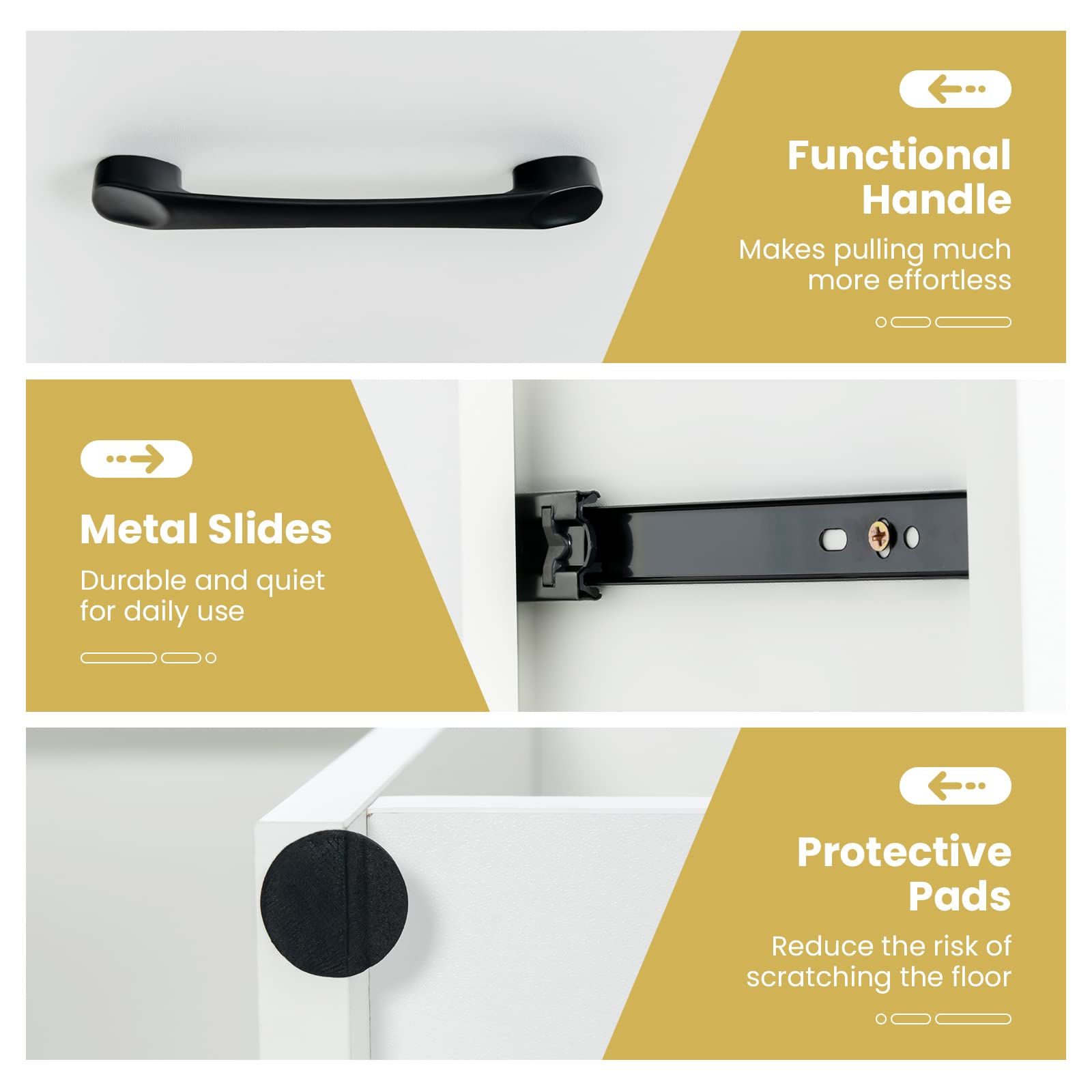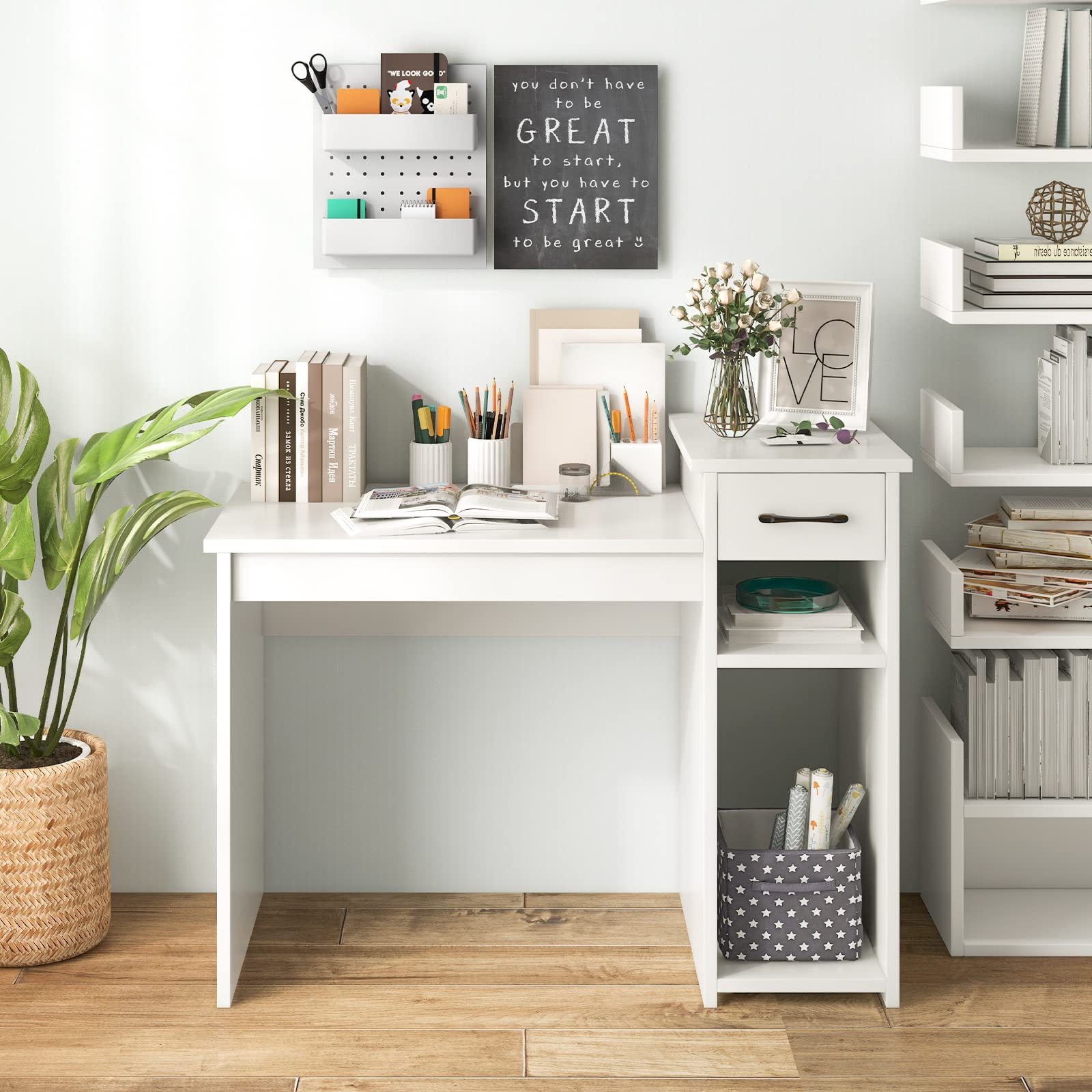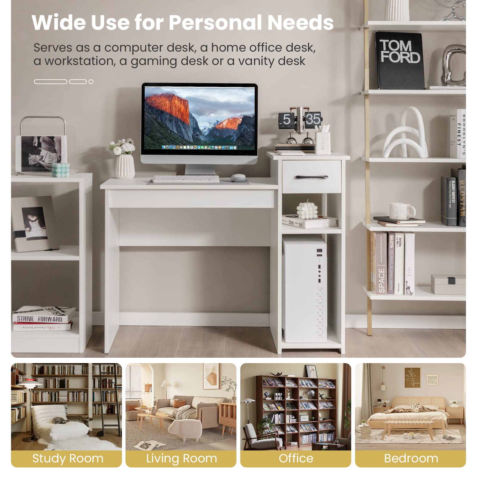 First of all, the stable structure is an ideal safeguard for strong support and great durability. Its desktop is wide enough for comfy working, while the side top shelf holds office supplies. Also, a pull-out drawer is private to store important documents. More importantly, there is an open 2-tier shelf where you can place a computer host. Based on your actual needs, the writing desk works well in diverse places, such as a laptop desk, a gaming desk, or a vanity desk. Also, its anti-slip pads will eliminate scratches.