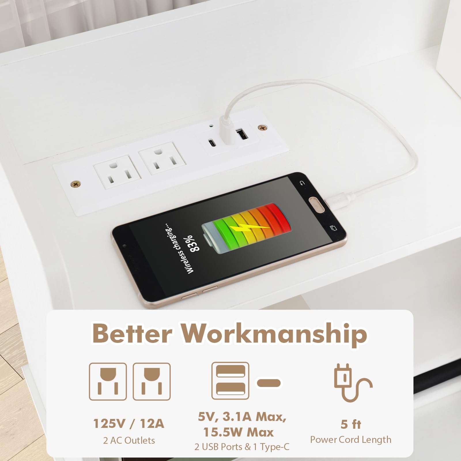 2 USB Ports & 1 Type-C: 5V, 3.1A Max, 15.5W Max