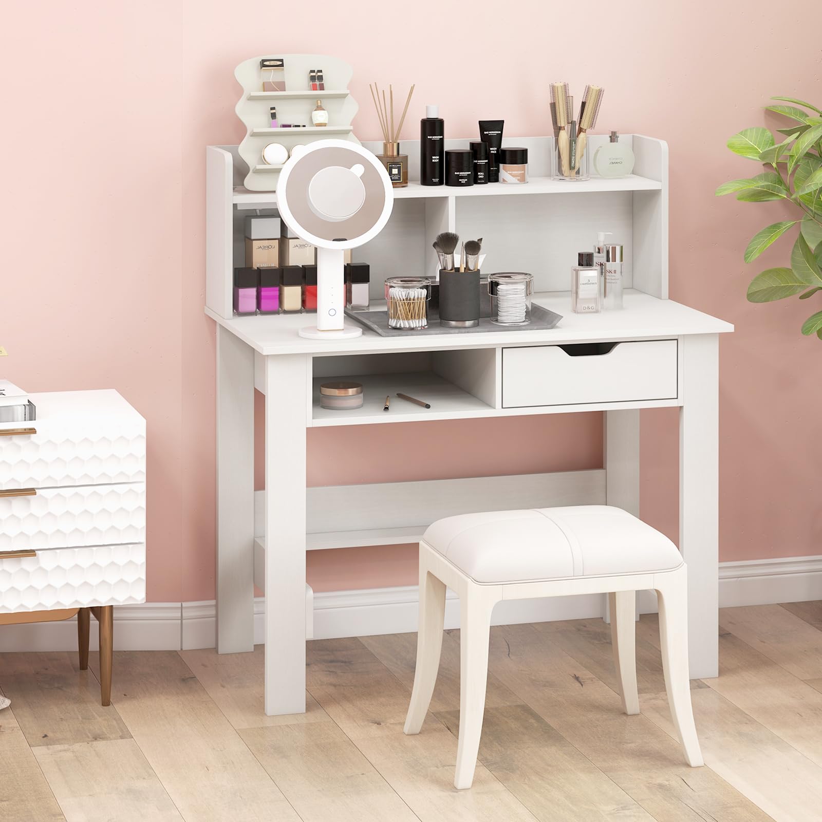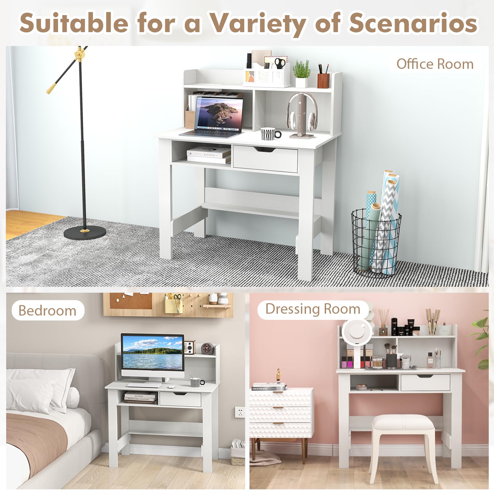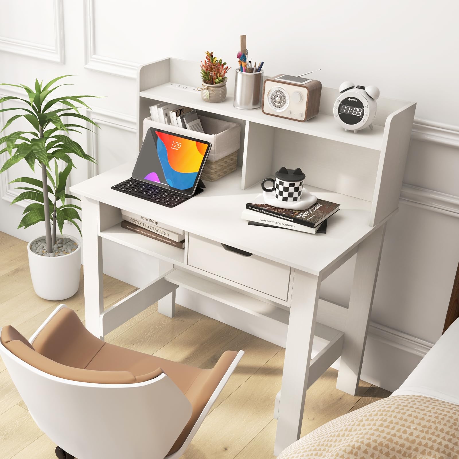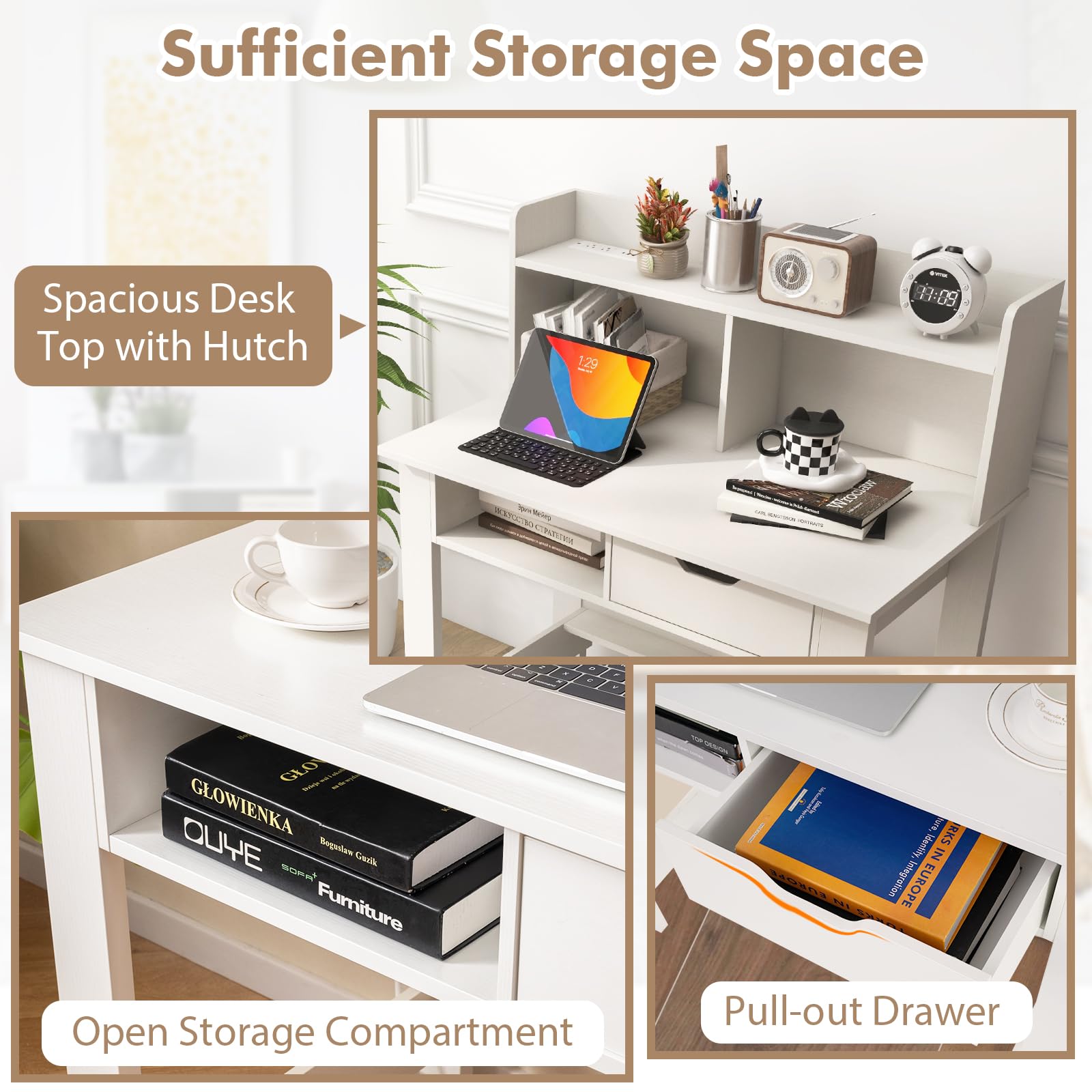 Spacious desktop and top hutch for keeping your workspace organized